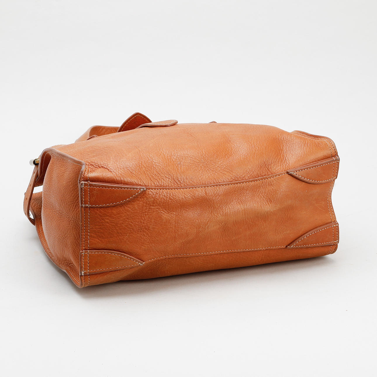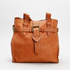 Bag in brown leather with metal details. One inner compartment with zipper. About 35 x 34 x 11 cm. Marked inside with metal plaque.