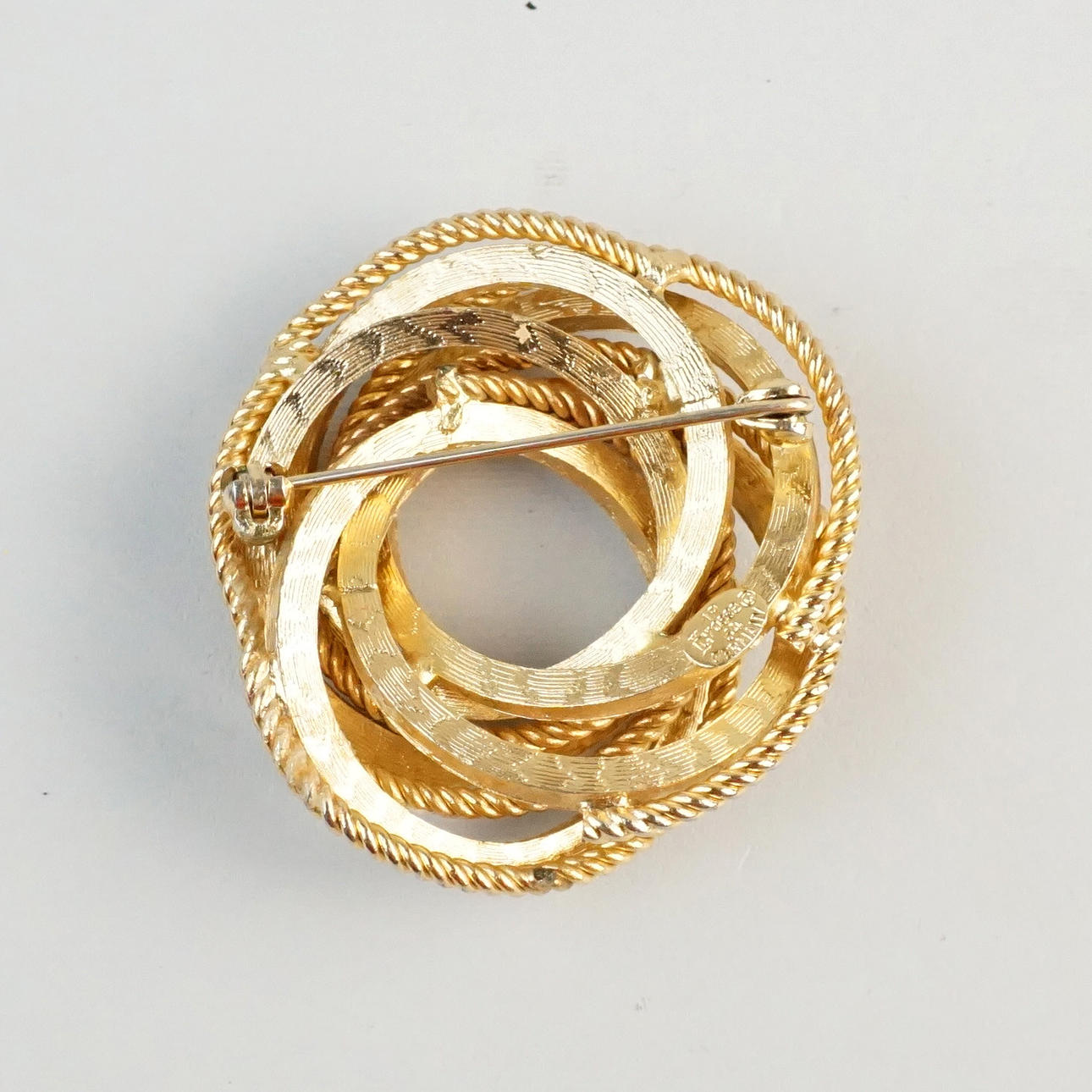 Vintage brooch in yellow metal, hallmarked Grossé, Germany, 1964. Diameter approx. 4 cm.