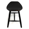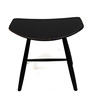 Black lacquered ash, the top with rounded sides on cylindrical legs united by stretchers, 48cm x 35cm x 47cm high.
