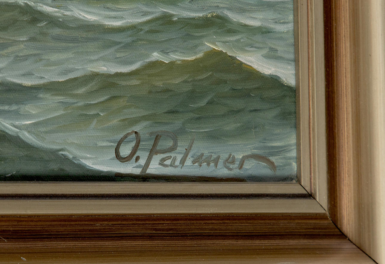 Otto Palmer, Danish tall ship, oil on canvas, probably 1960s, signed lower right, approx. 48.5 x 70.5 cm, with frame approx. 57x79 cm.