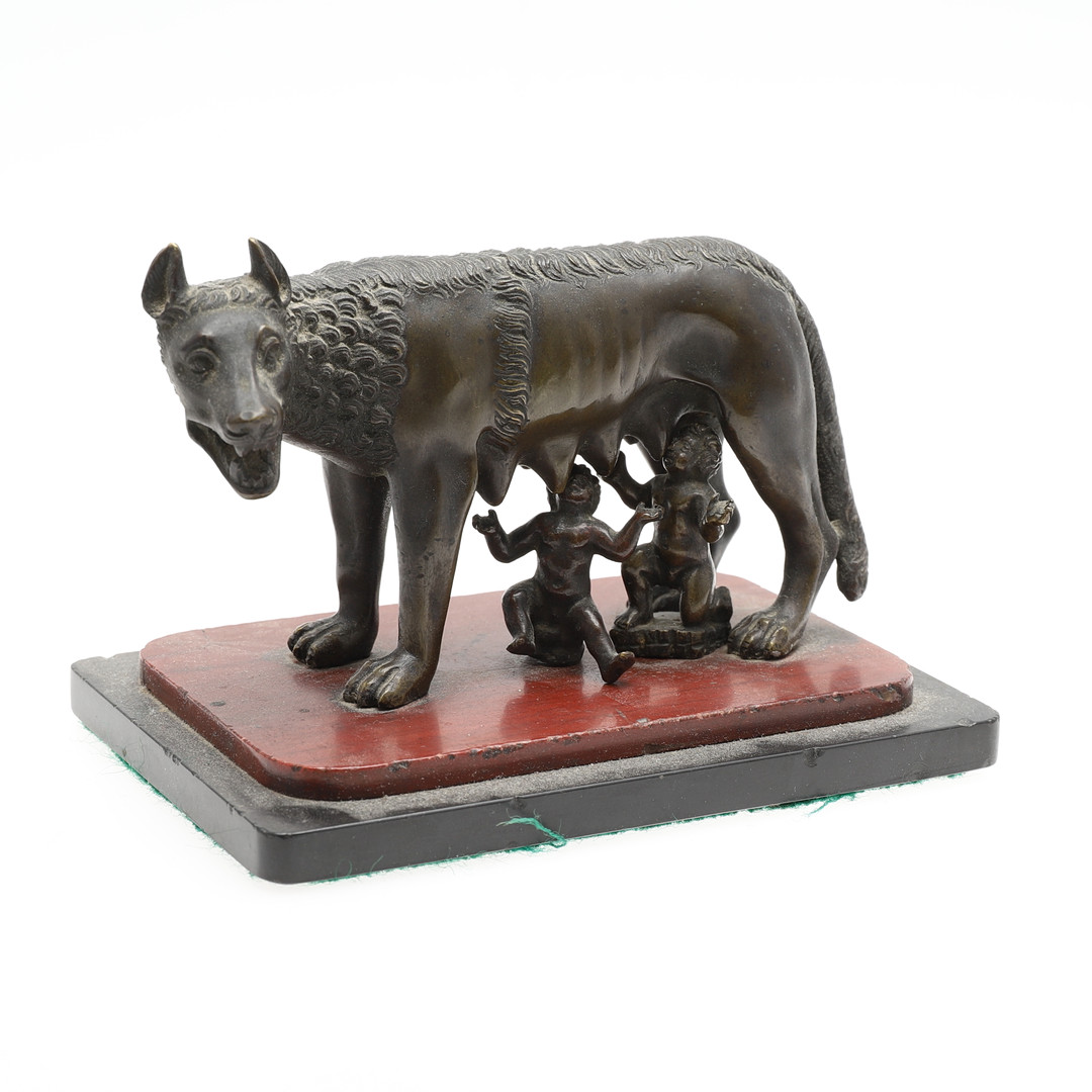 2845251. A BRONZE MODEL OF ROMULUS AND REMUS.