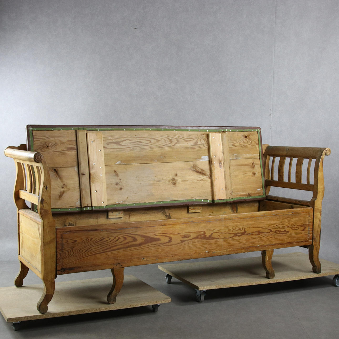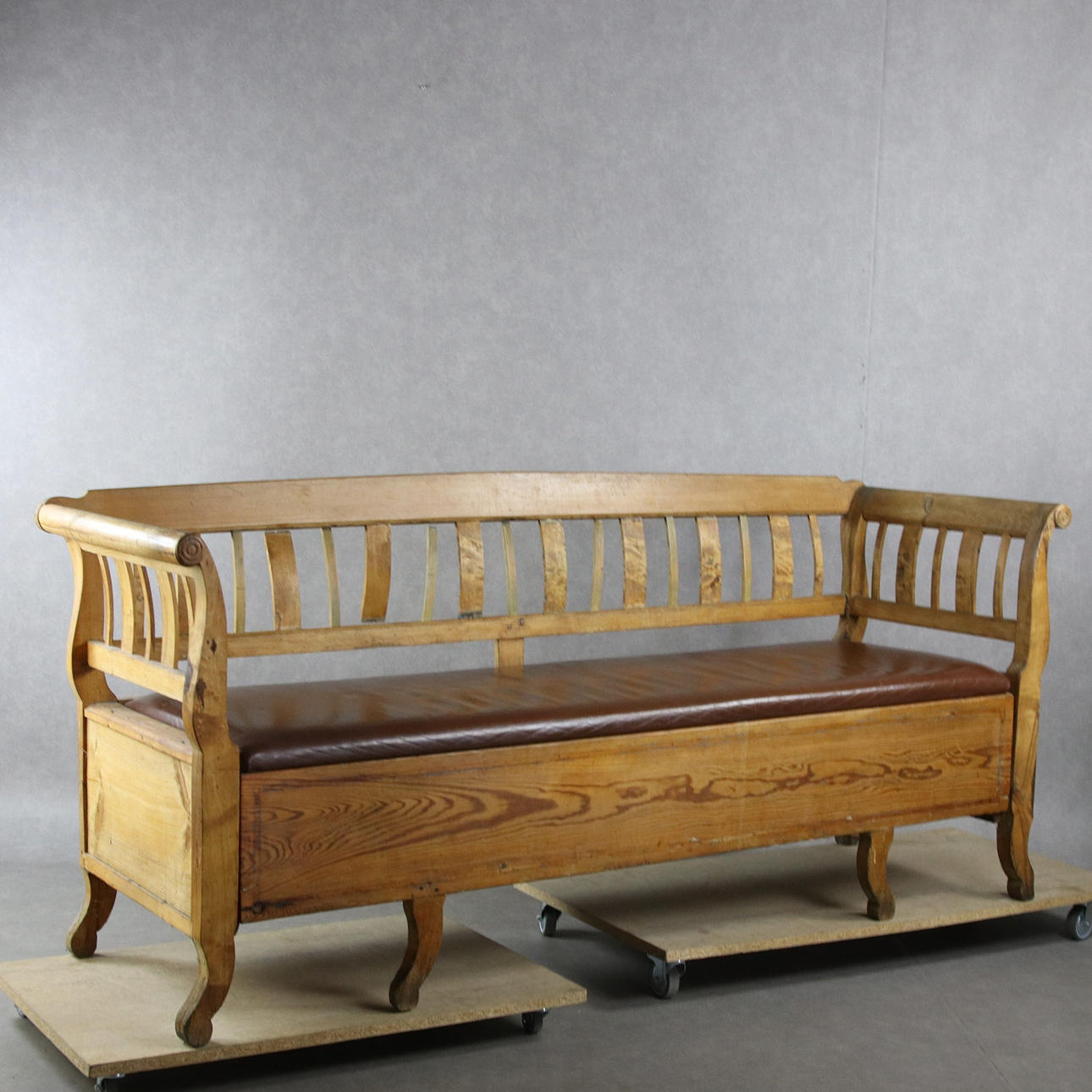 2846348. EXTENDED SOFA/KITCHEN SOFA, pine, leather-covered seat, early 20th century.