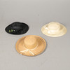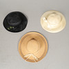 and a Model by Pauline for Bermoda England, black woven hat with black ribbon and silk flower adornment.