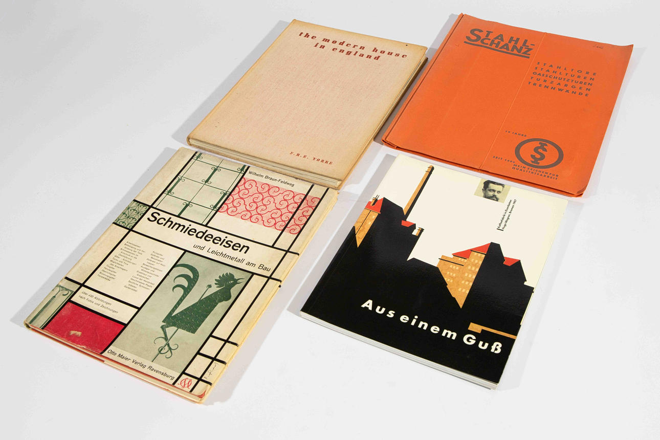 "Building '20-'40 The Dutch Contribution to New Building". "New shops, 1st year, issue 2, 1956". "Karl Schneider" - Cook and Pook. "Wrought iron" - Wilhelm Braun country lane. ""The Modern House in England, 3rd Edition 1948". "All of a piece" - Bremen State Museum. "Frankfurter Schanz, Stahl" - advertising brochures. "Franz Krause" - Edition Marzona. "The New Dortmund" - Gisela Framke. "Stadt 5/82" - monthly magazine for housing and urban development. "From single home to boarding house" - Markus Eisen. "The bourgeois dream of the noble castle" - judges and brawlers. "One Hour Architecture" - Adolf Behne. "Hubert Hofmann" - Festschrift. "The functional city, Le Corbusier's vision of the city" - Thilo Hilpert. "Construction Craft" - 1926. "Building in Berlin since 1900" - Rave and Knöfel. "The entrance" - Dortmund Architecture Days 2008. "THE Bauhaus" - Uwe Westphal. "Otto Haesler" - Simone Oelker. "New shops" - Gatz and Hierl. "For New Brno, 2 volumes in slipcase". "Architecture of the 20th Century" - Gössel and Leuthäuser.
