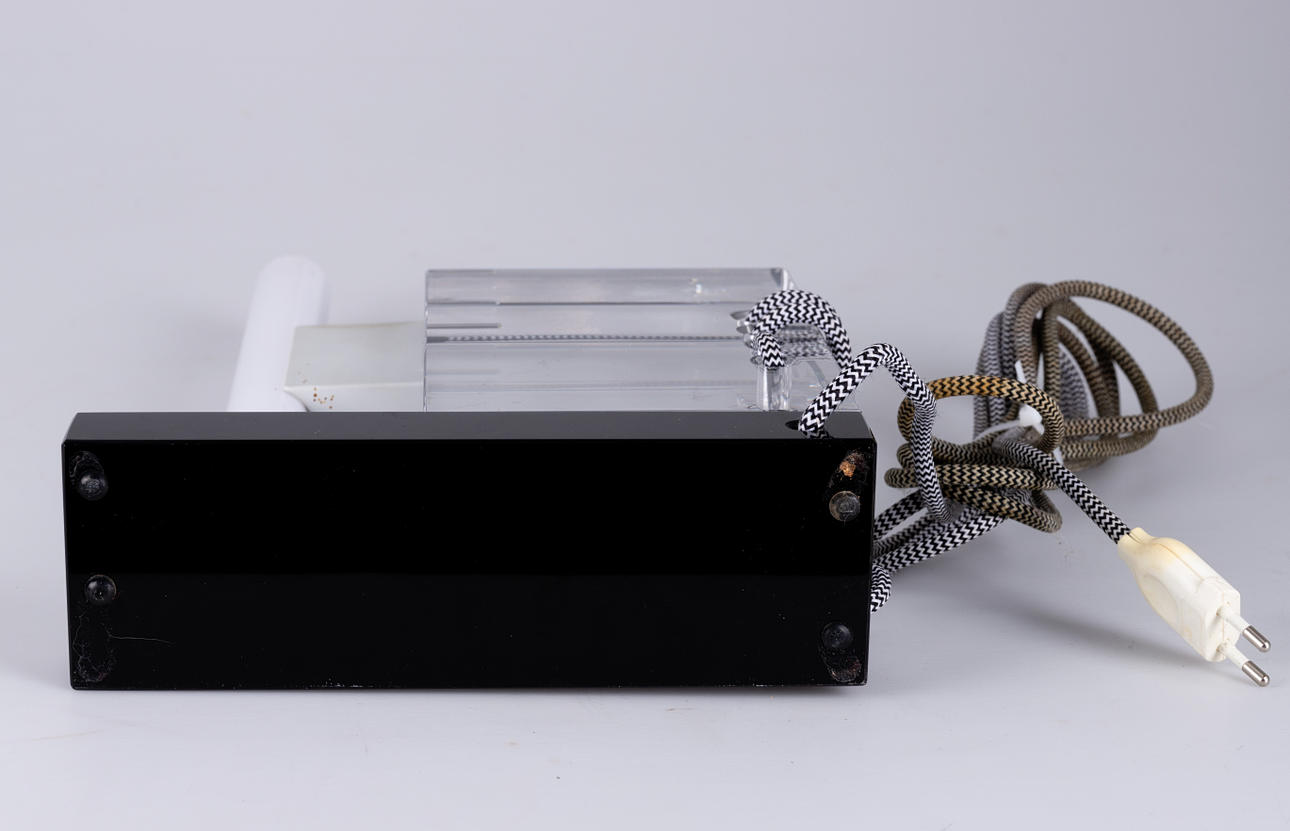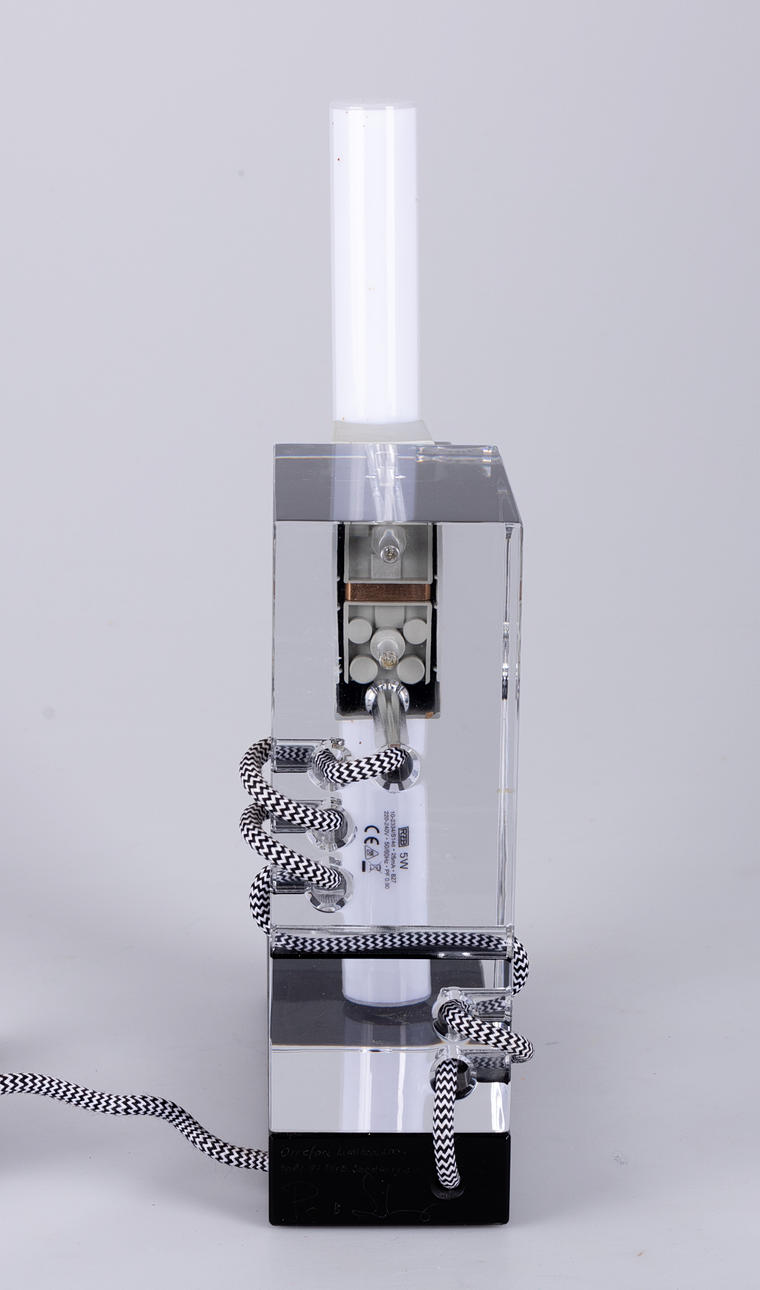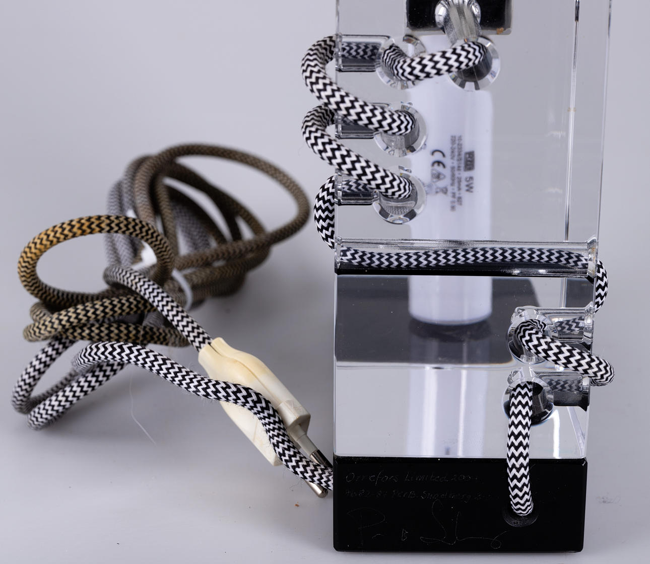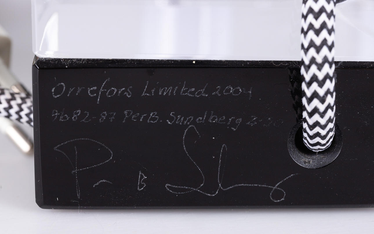 Colorless and black glass. textile cable. Limited Edition, signed and dated. HxWxD: approx. 34x23x8cm.