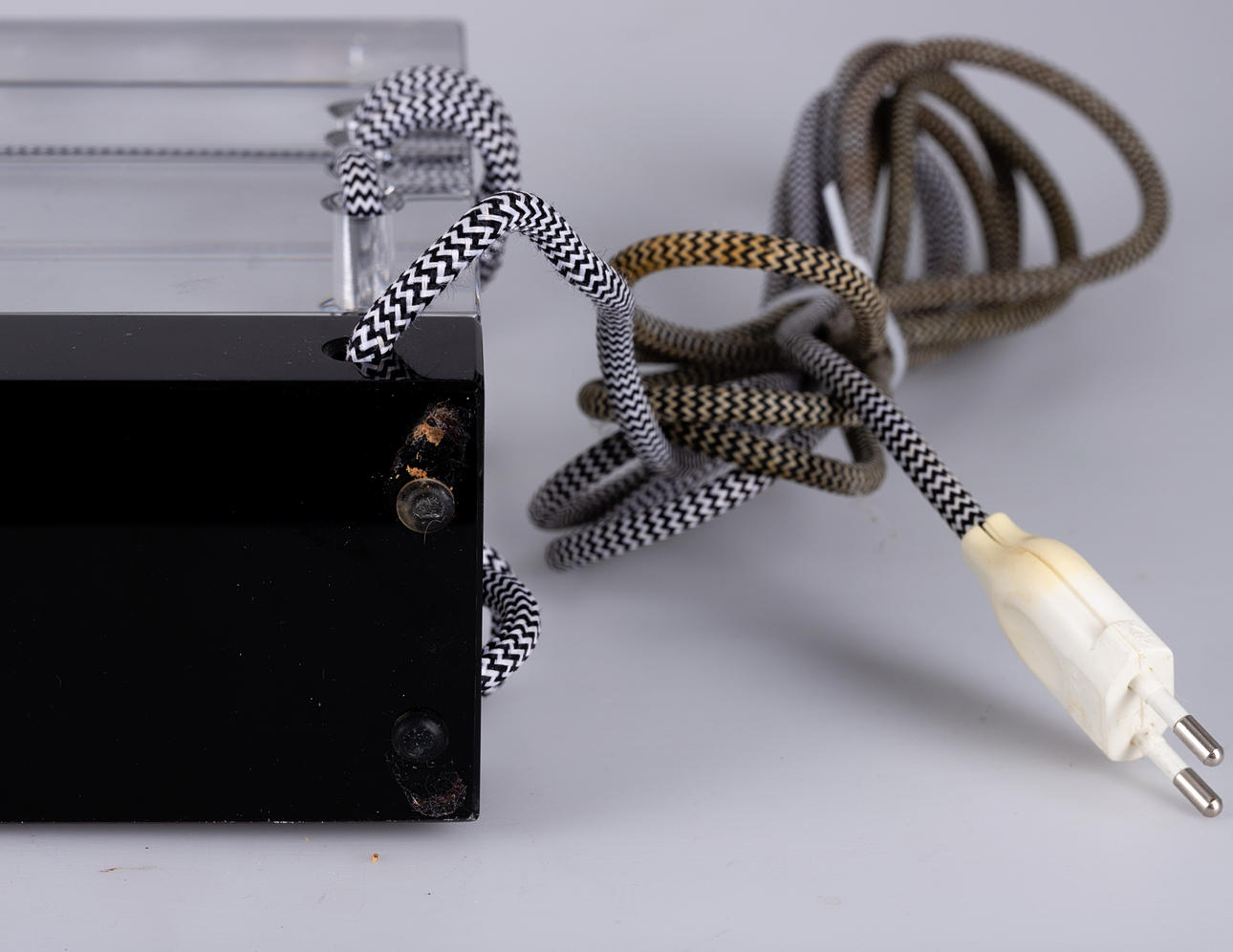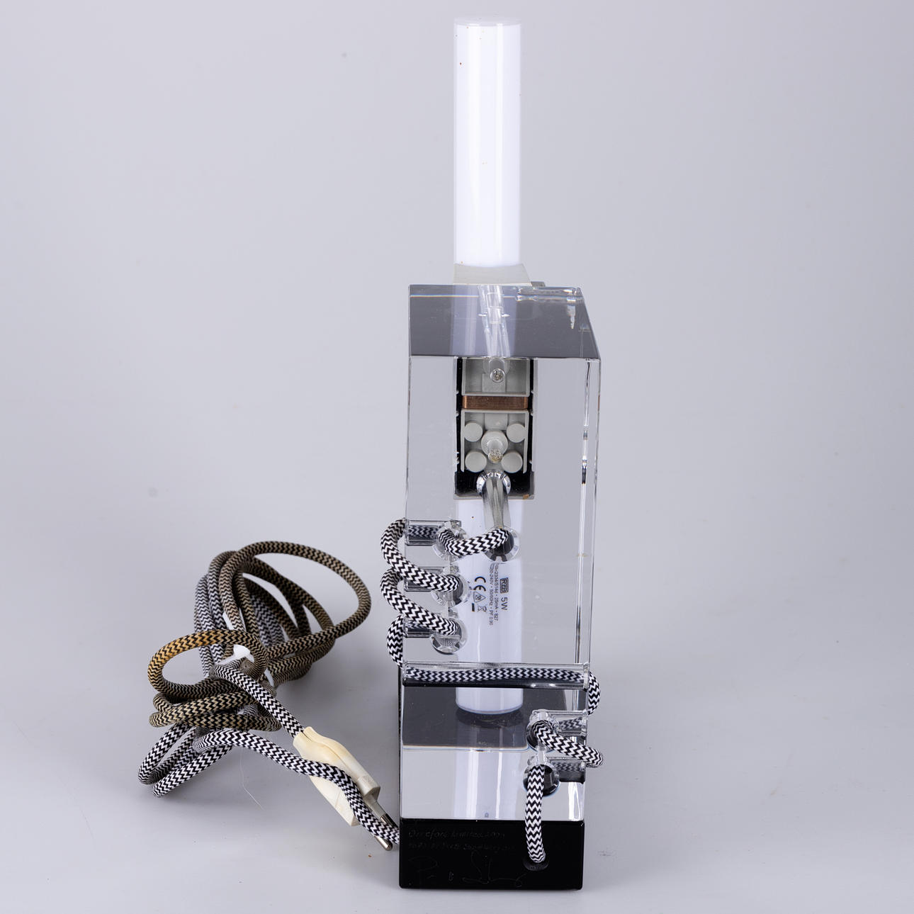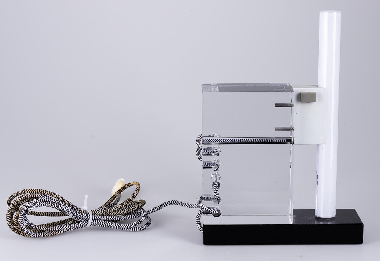 Colorless and black glass. textile cable. Limited Edition, signed and dated. HxWxD: approx. 34x23x8cm.