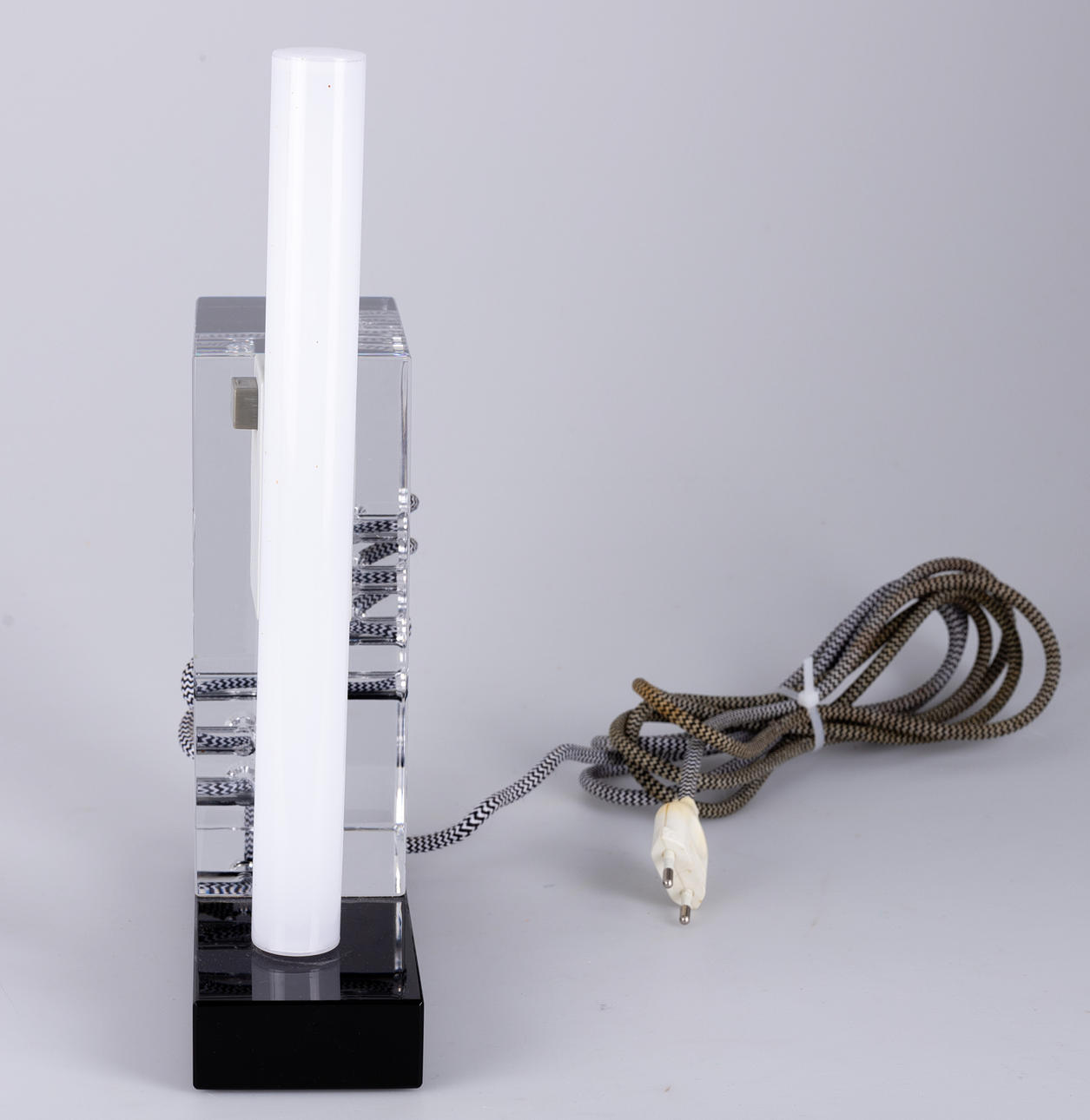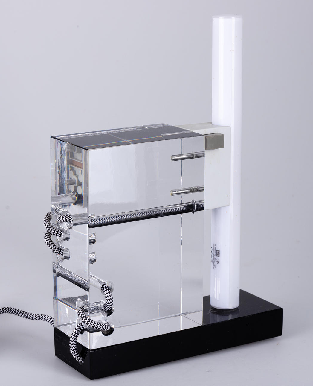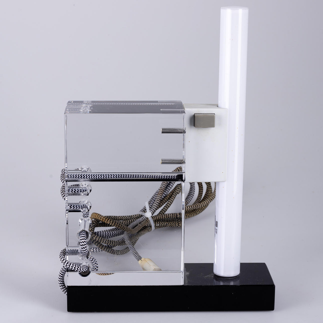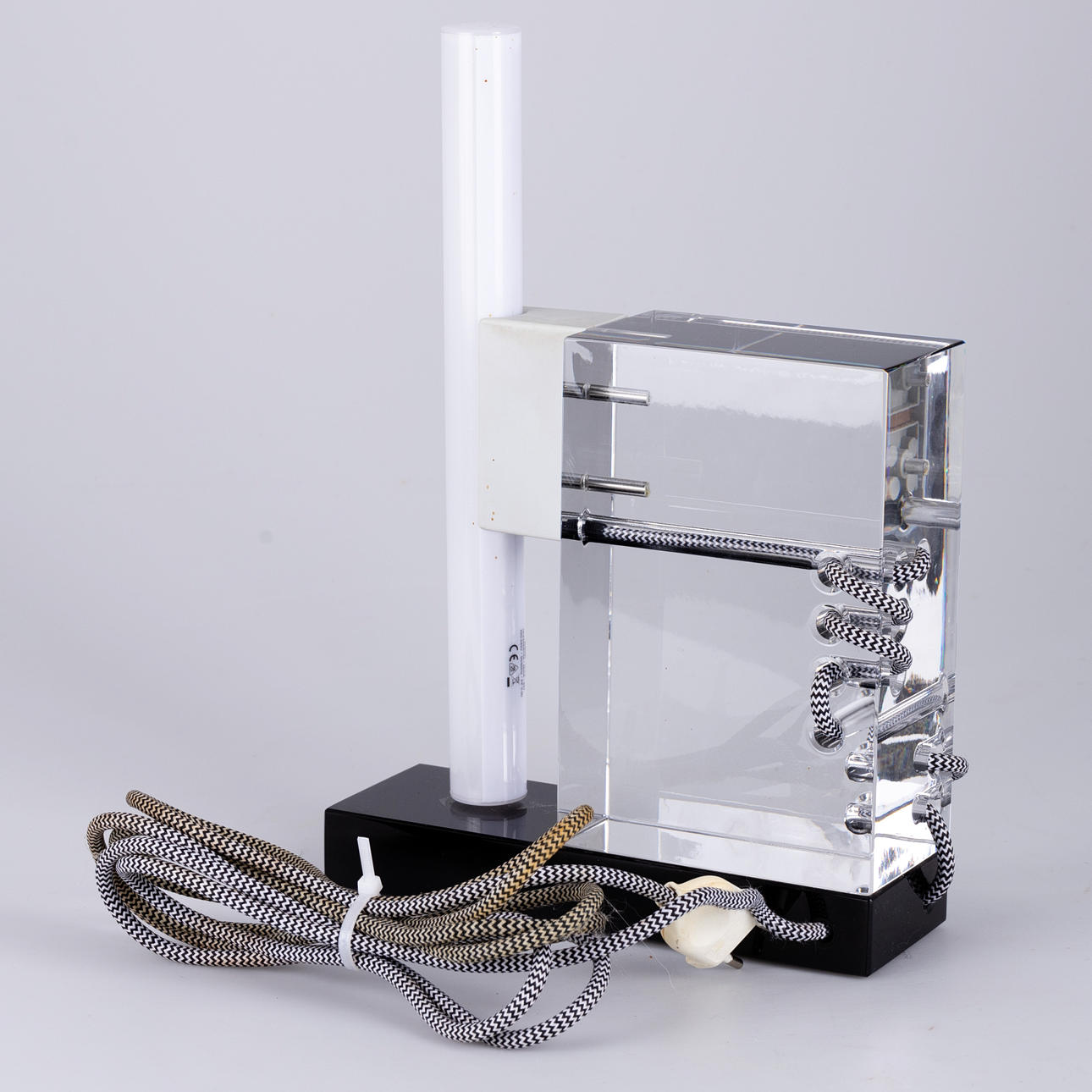 Colorless and black glass. textile cable. Limited Edition, signed and dated. HxWxD: approx. 34x23x8cm.