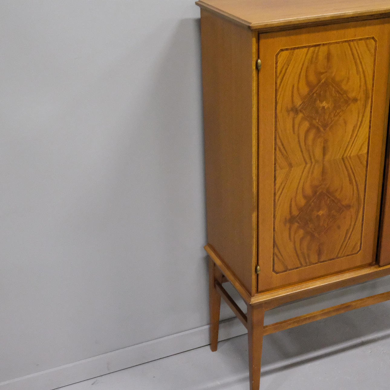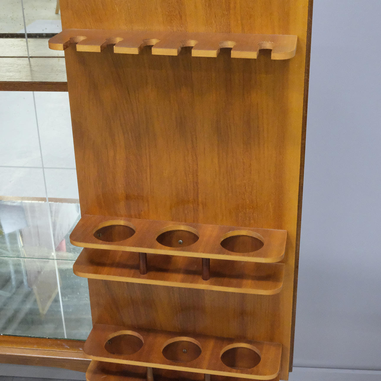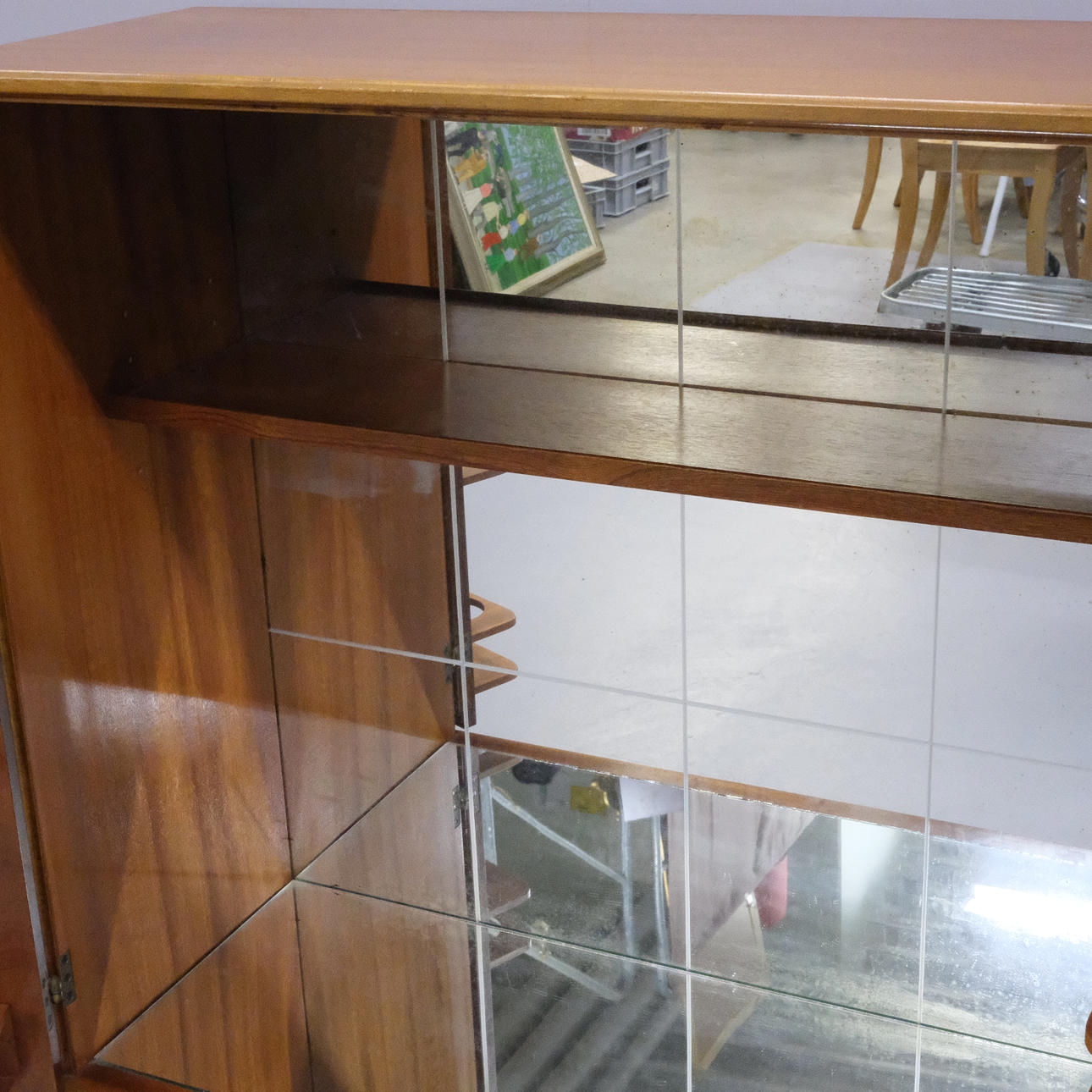 Inside with mirror glass, inside doors with holders for bottles and glasses, height 118cm, length 82cm, width 35cm.