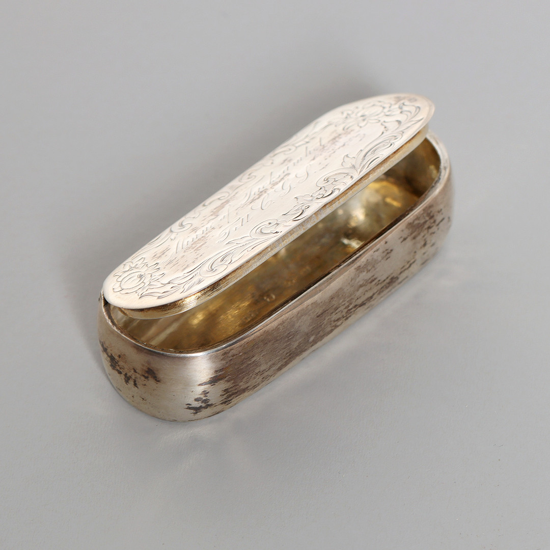 2849672. SILVER OBJECTS, 4 parts, including snuff box 1856.