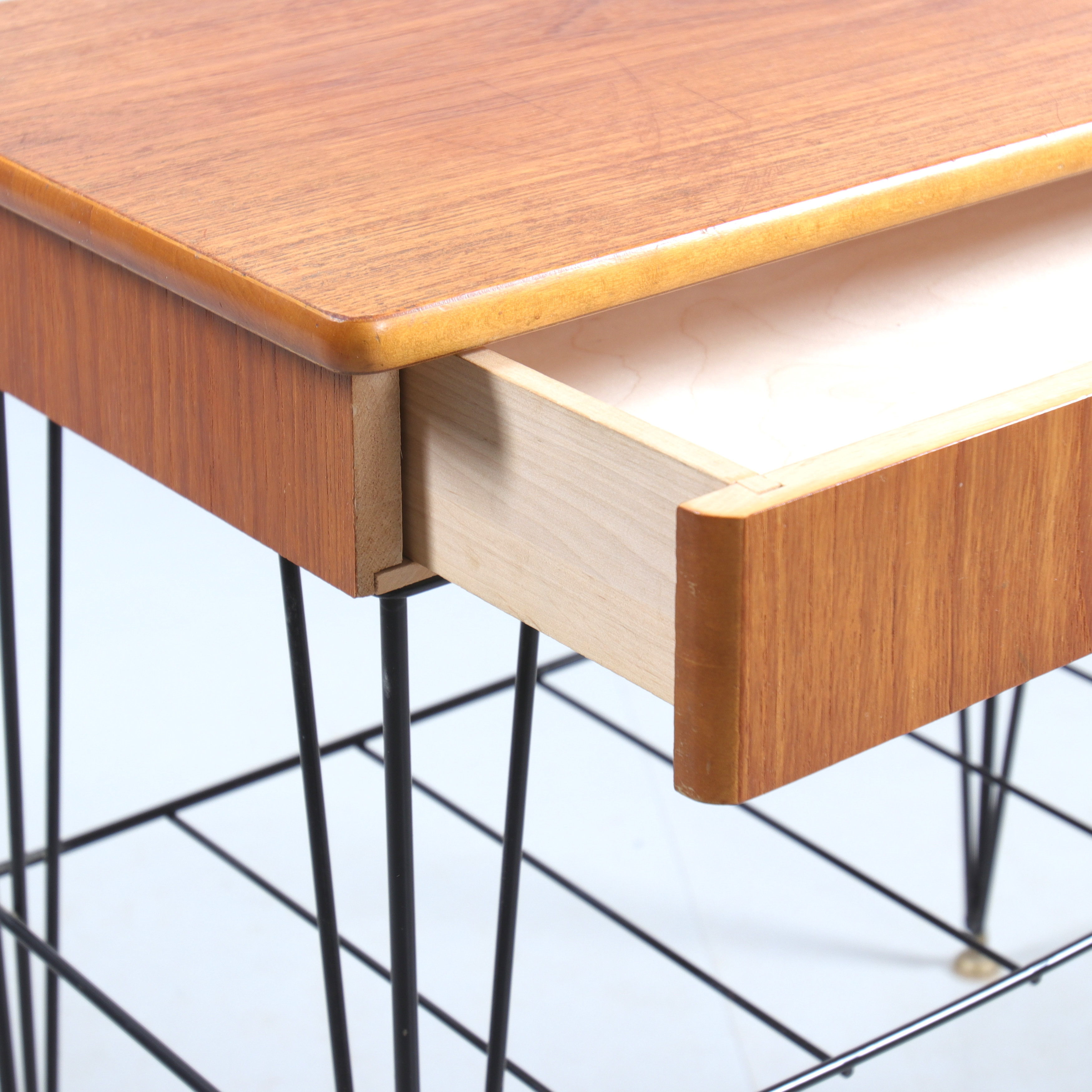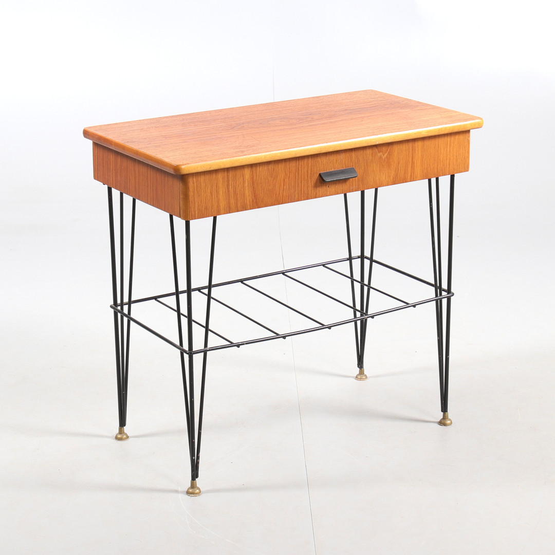 2851022. TELEPHONE TABLE, teak, string, 1950s/60s.