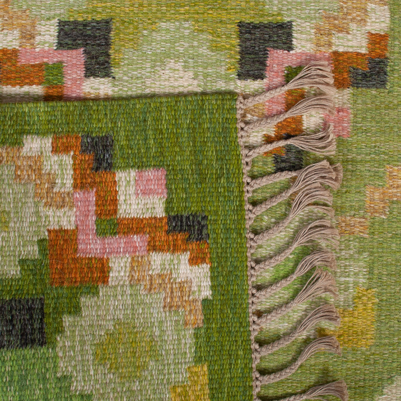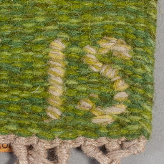 Geometric pattern in green tones Dimensions 140 x 200 cm Signed and with label.
