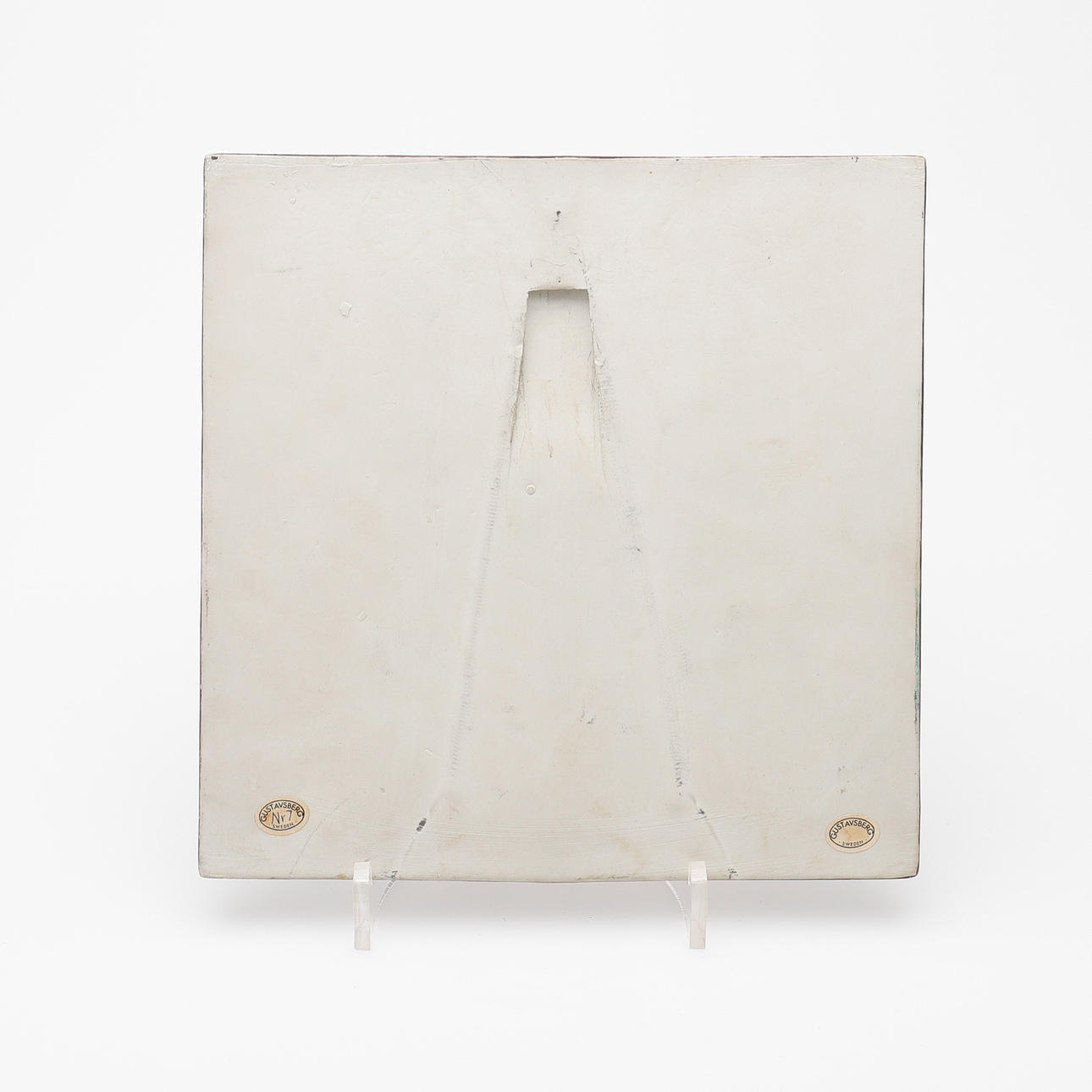 Partly glazed stoneware, imprinted signature and label. 22.5x22.5 cm.