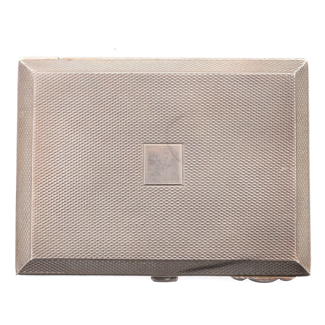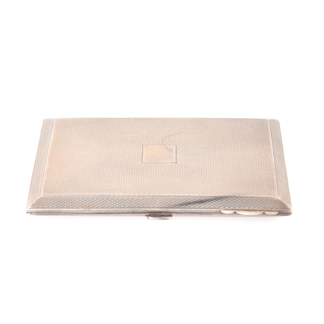2857335. AN ART DECO RECTANGULAR ENGINE TURNED SILVER COMPACT.