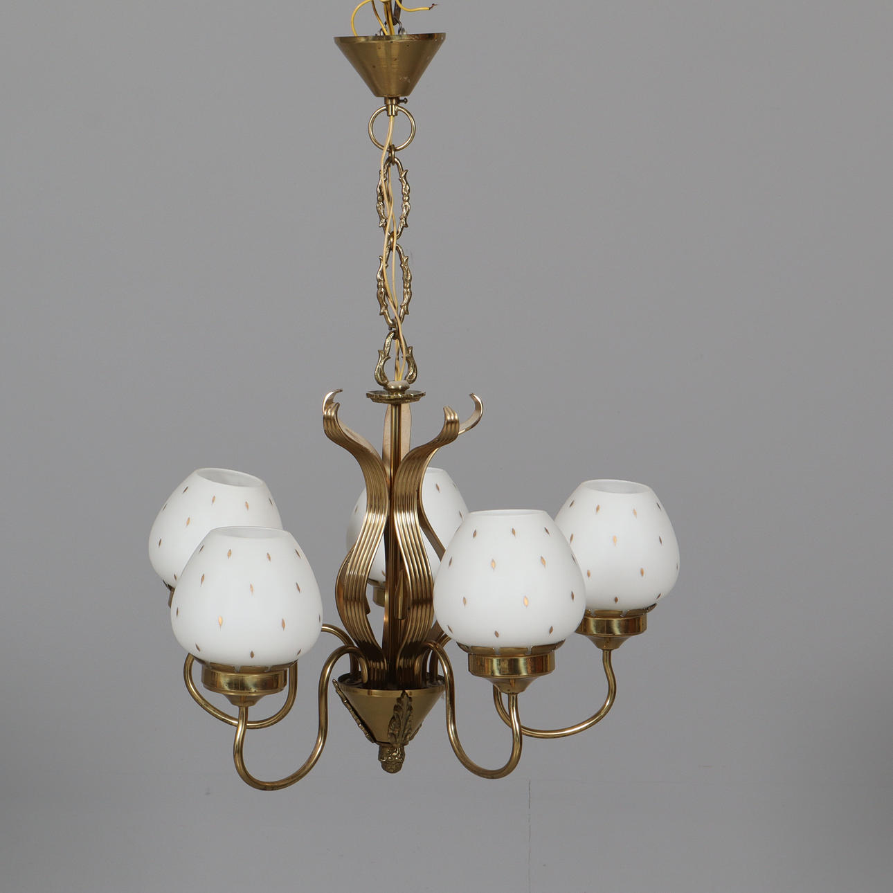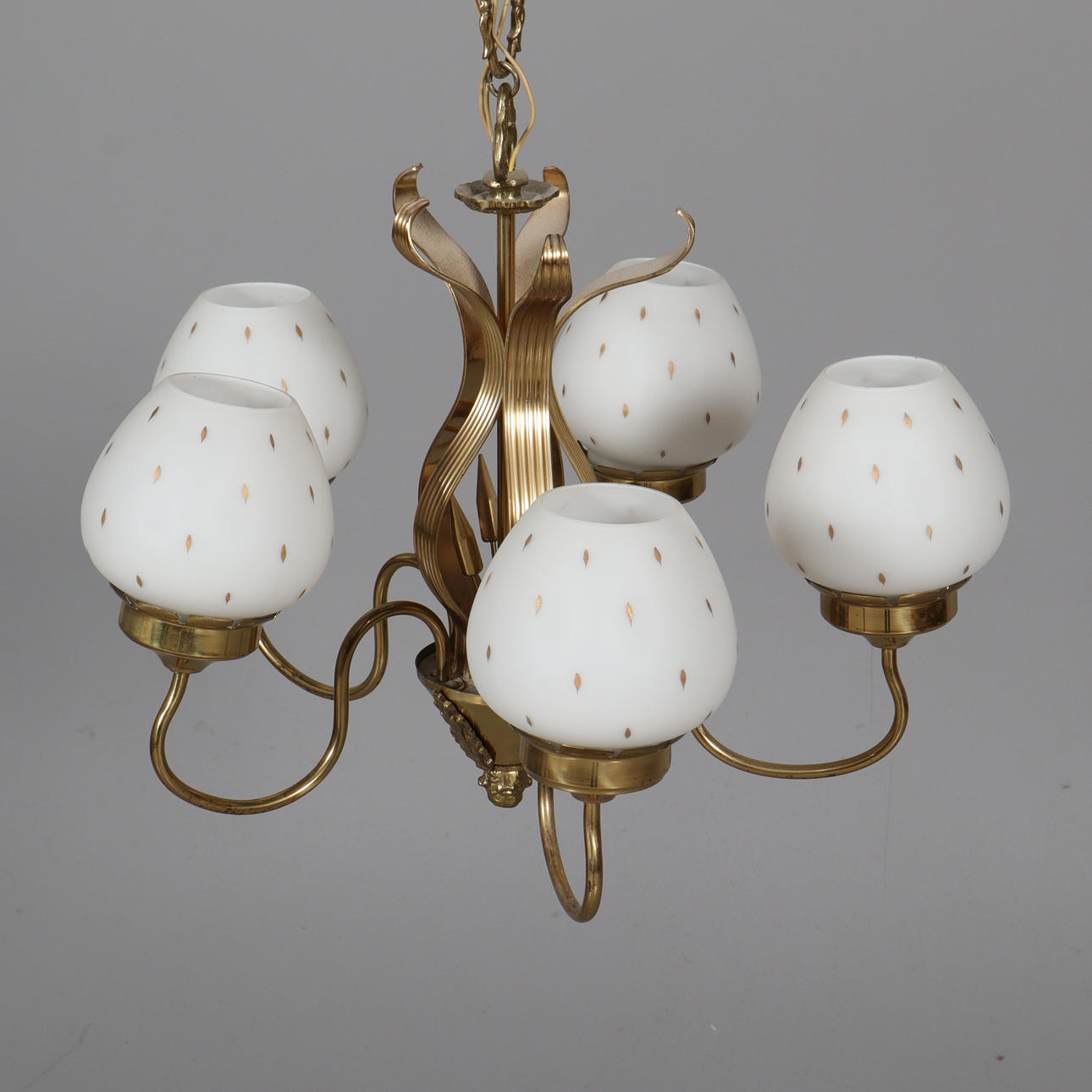 2857707. CEILING LAMP, five-armed, brass with glass domes.