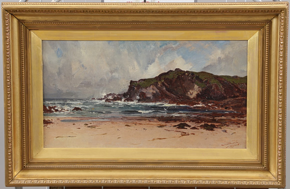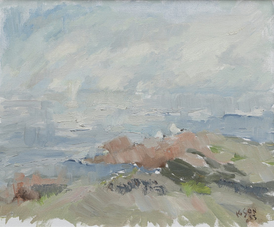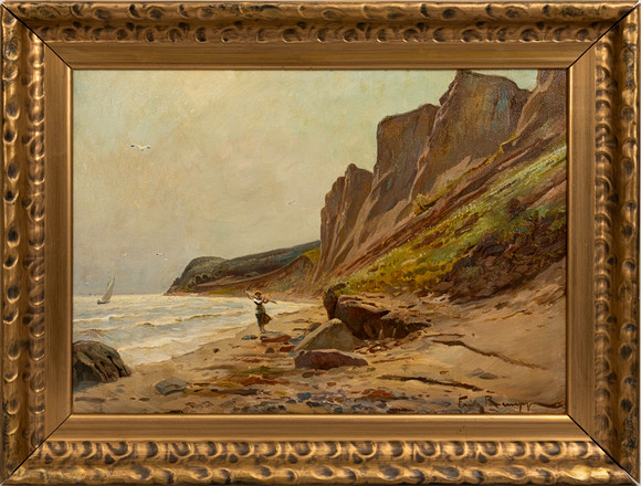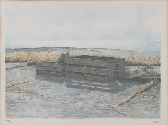 2861591. OSKAR BERGMAN. Coastal motif with birches, color lithograph.