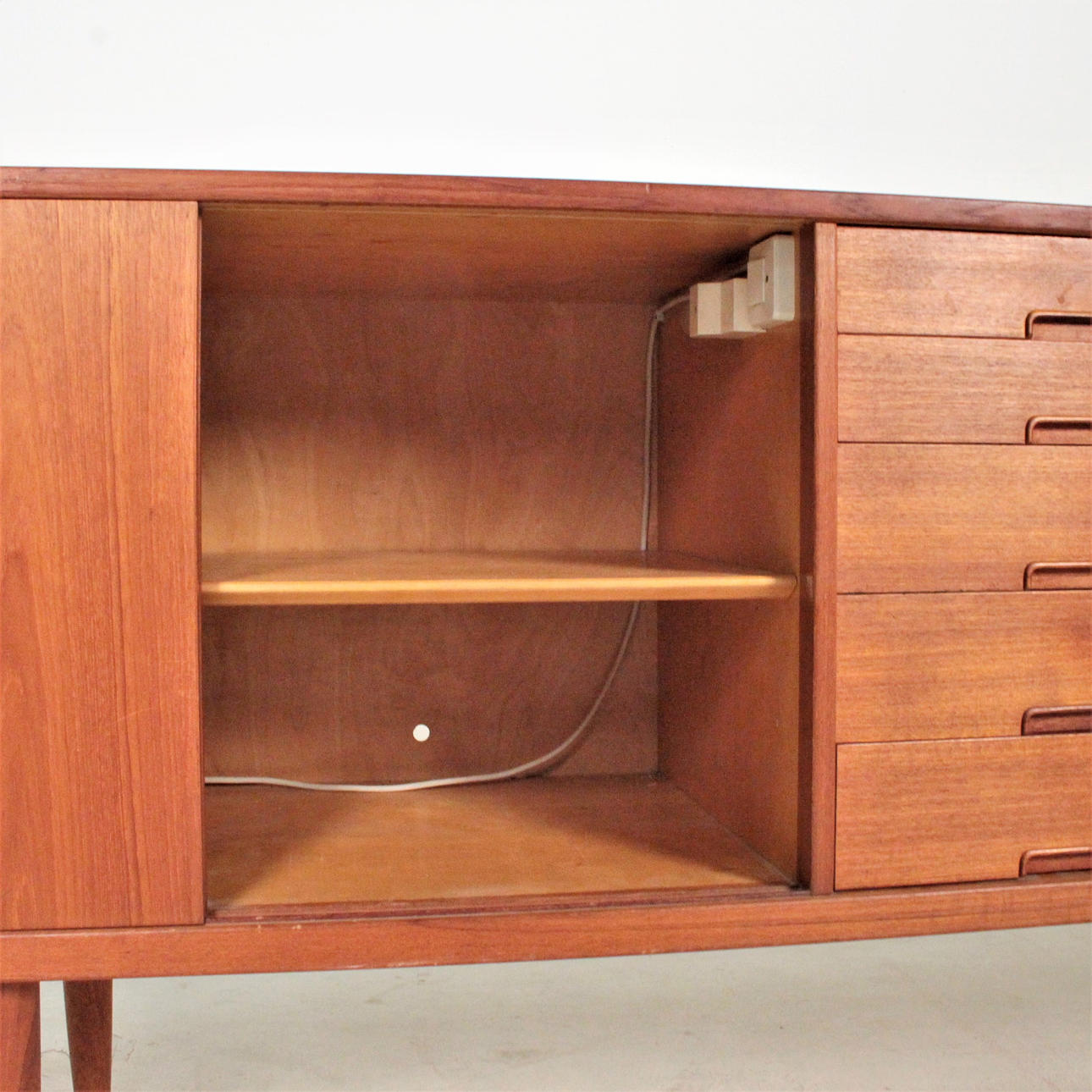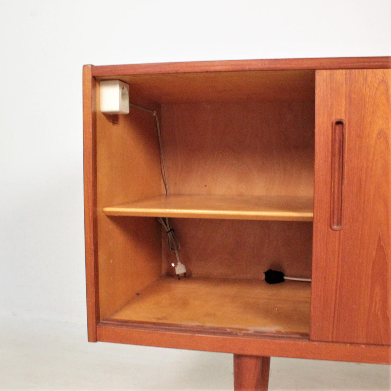 Age-appropriate condition. Partial scratches, stains and abrasions. In the interior, holes etc. were made for sockets and cables. Covered with styrofoam on the back.