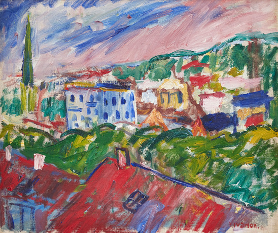 STIG JONZON. View of Gynge Öland, oil on canvas, signed and dated 1973.