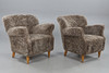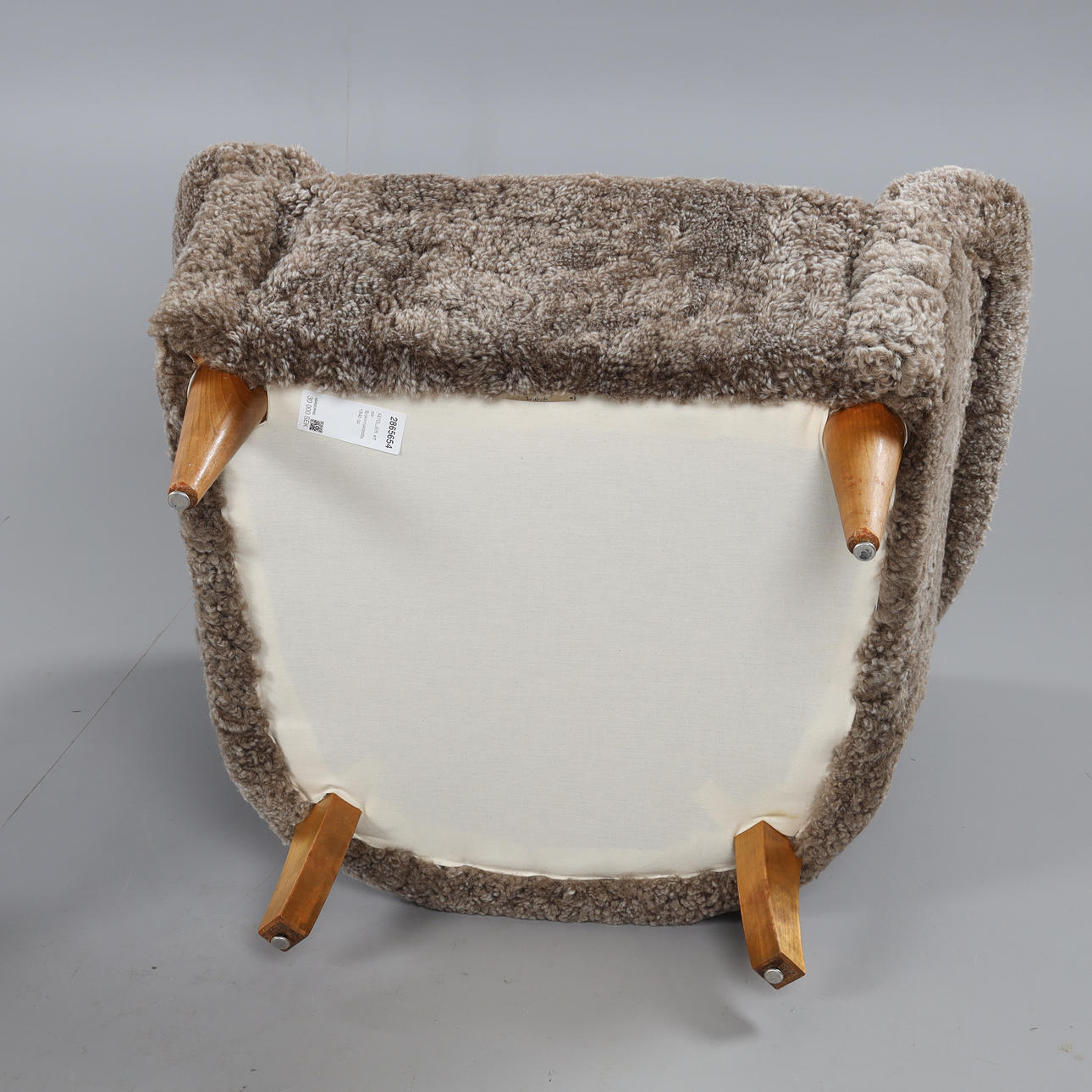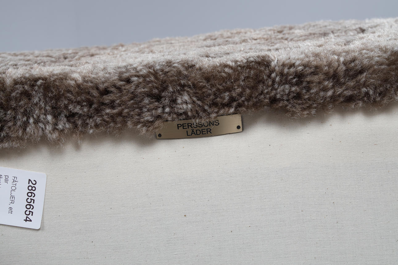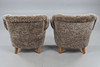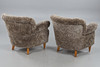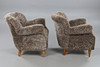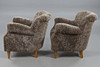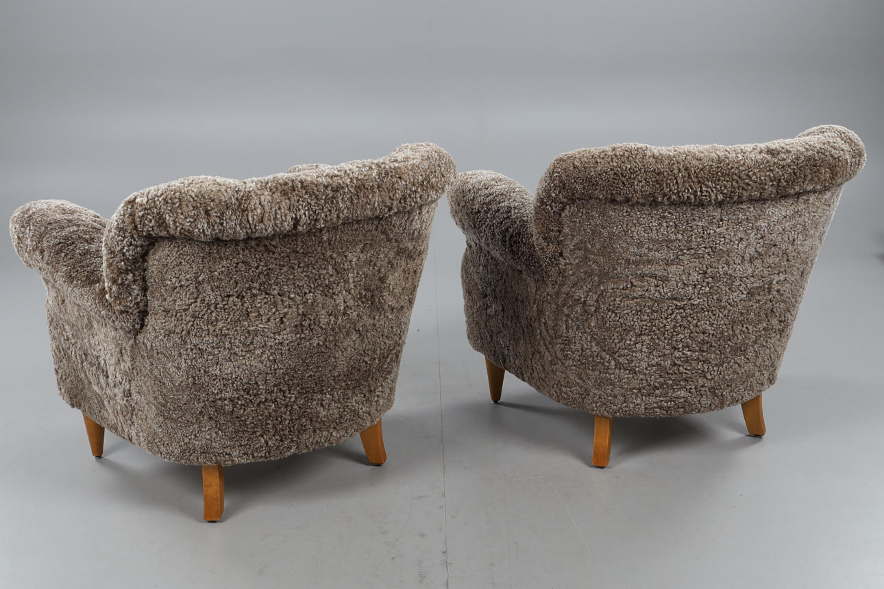 2865654. ARMCHAIRS, a pair covered in sheepskin, 1940s.
