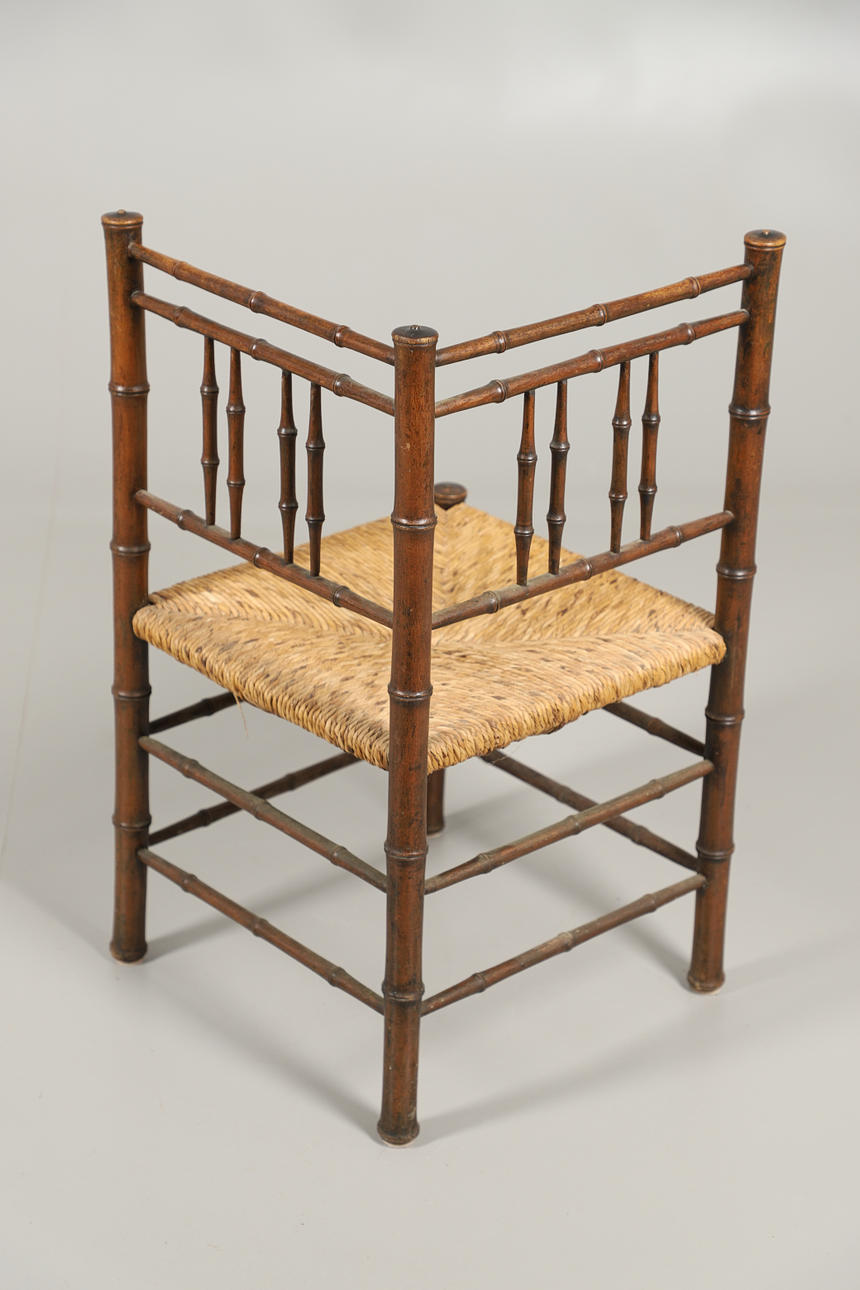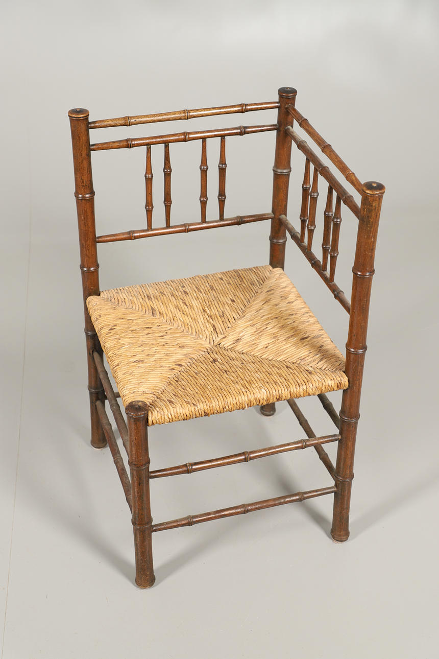 With a spindle back and a rush seat, total height 72cm, seat height 38cm.