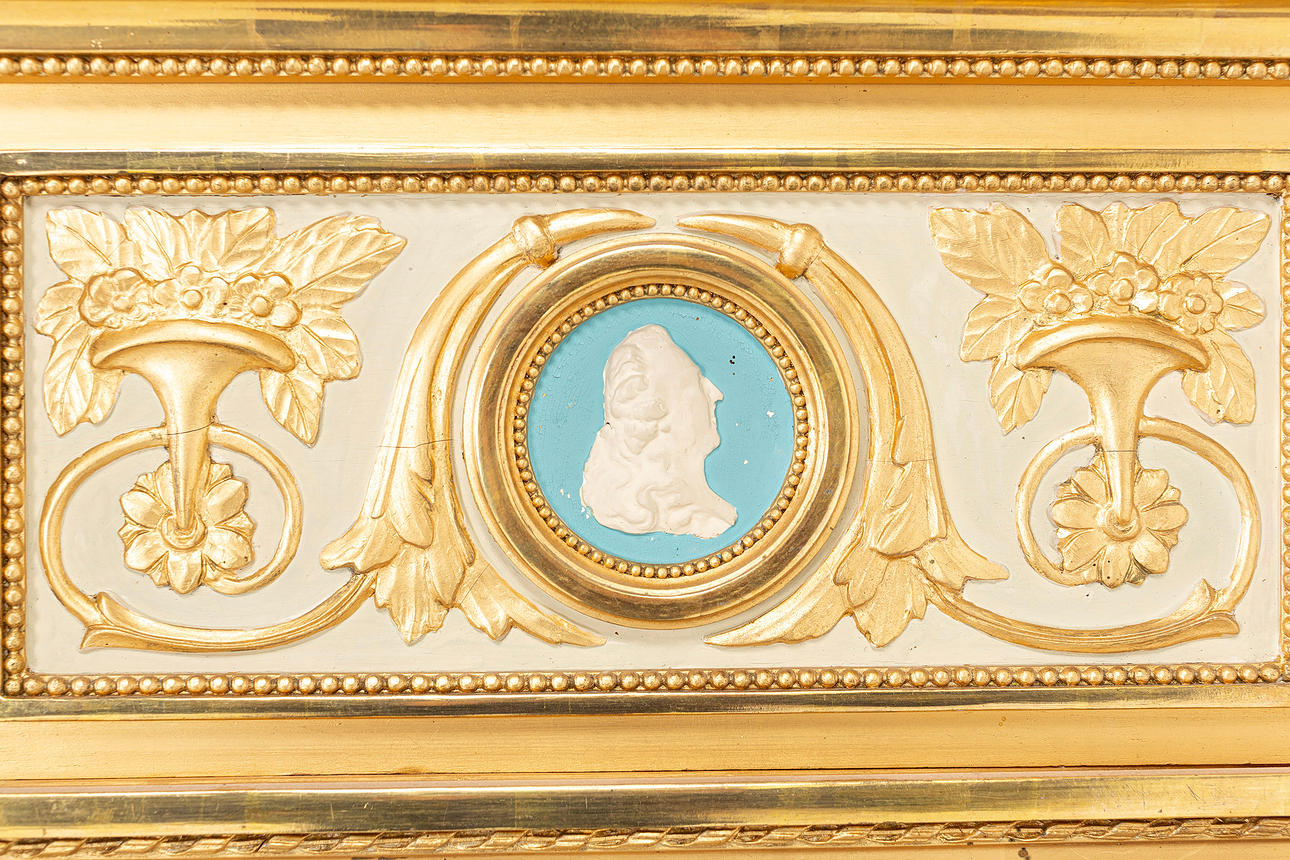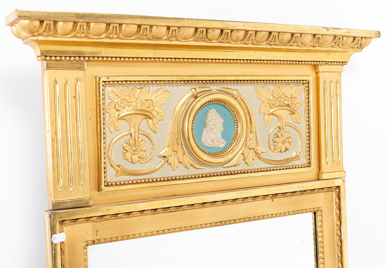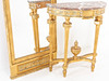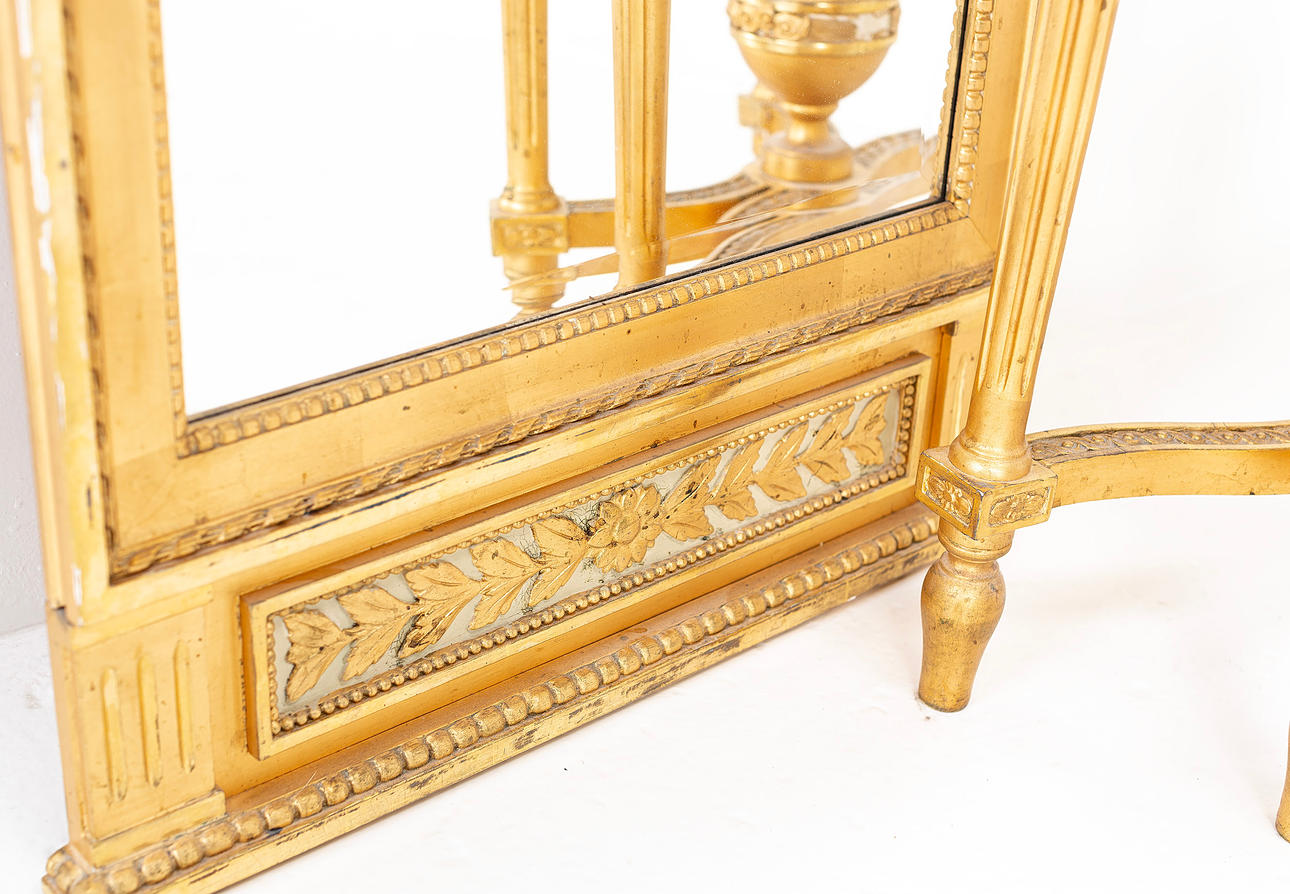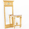 Mirror with minor scratches on the gilding at the edges, console table with chipped wood and Normal wear and tear.