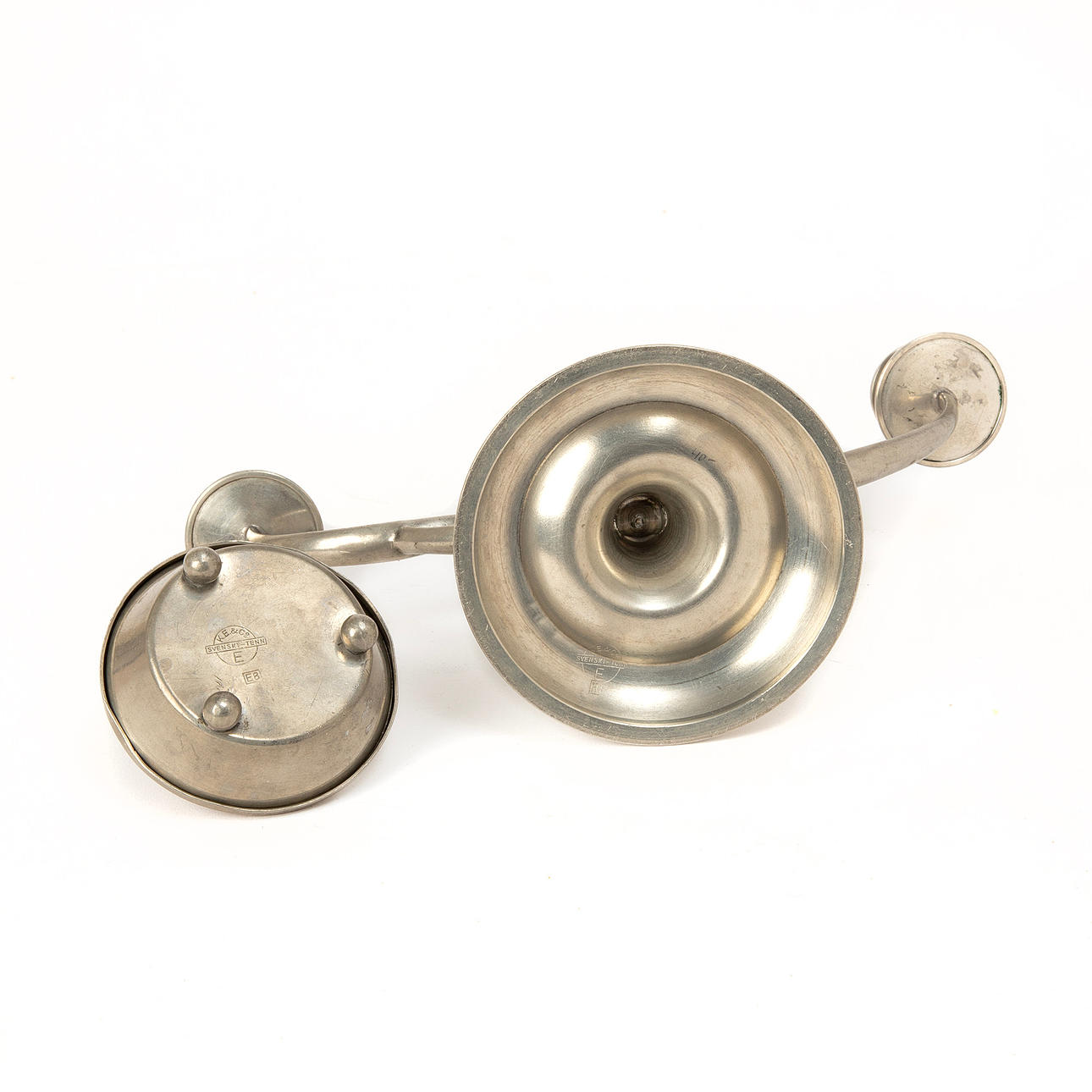 Candlestick, height approx. 18.5 cm. Jar height approx. 6.5 cm, diameter 7.5 cm.