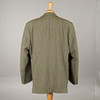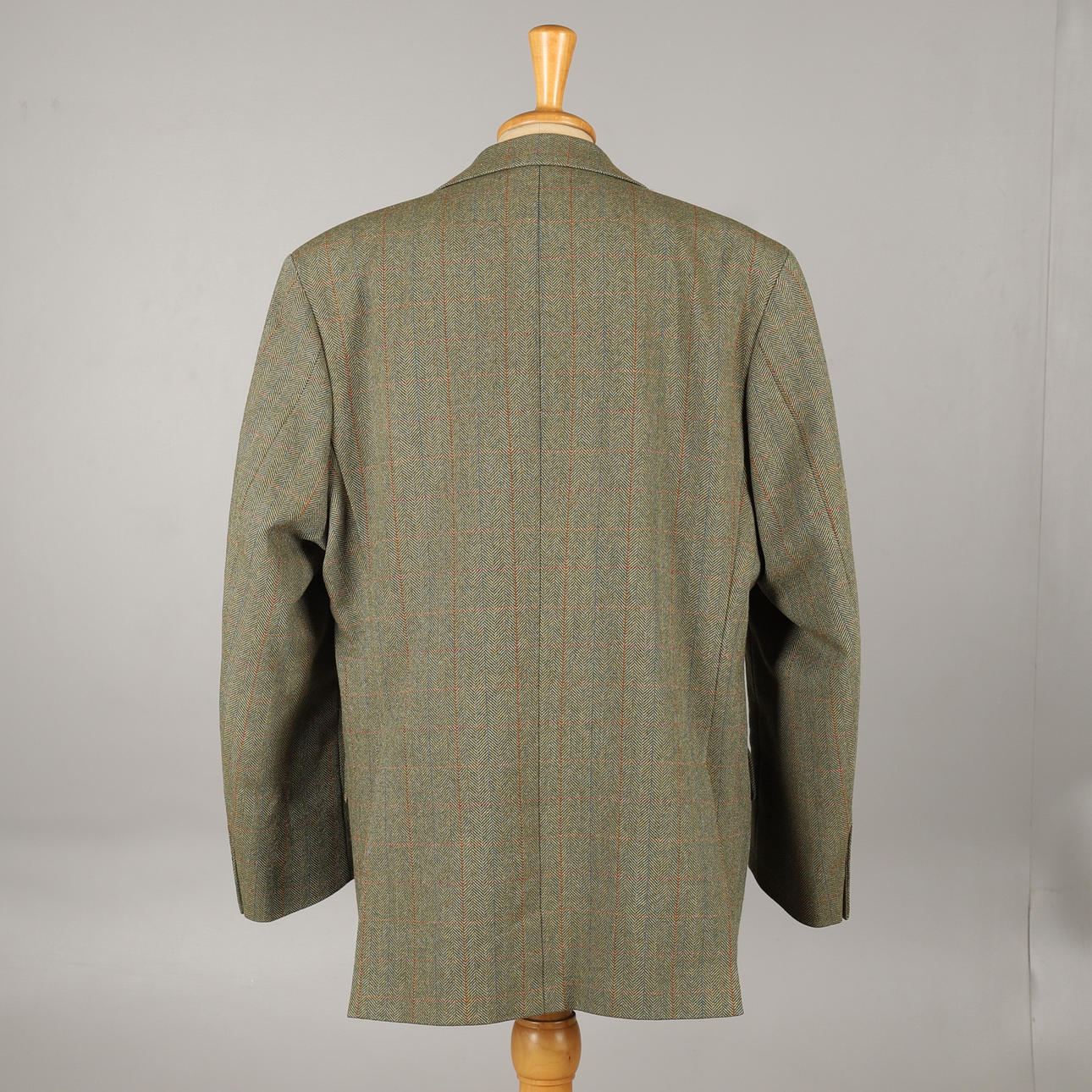 checker design with red, orange and blue overcheck on an olive green herringbone ground, three buttons and three external pockets, matching olive green silk lining, UK size 40.