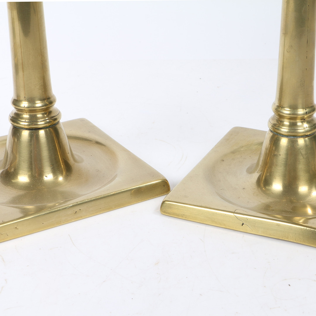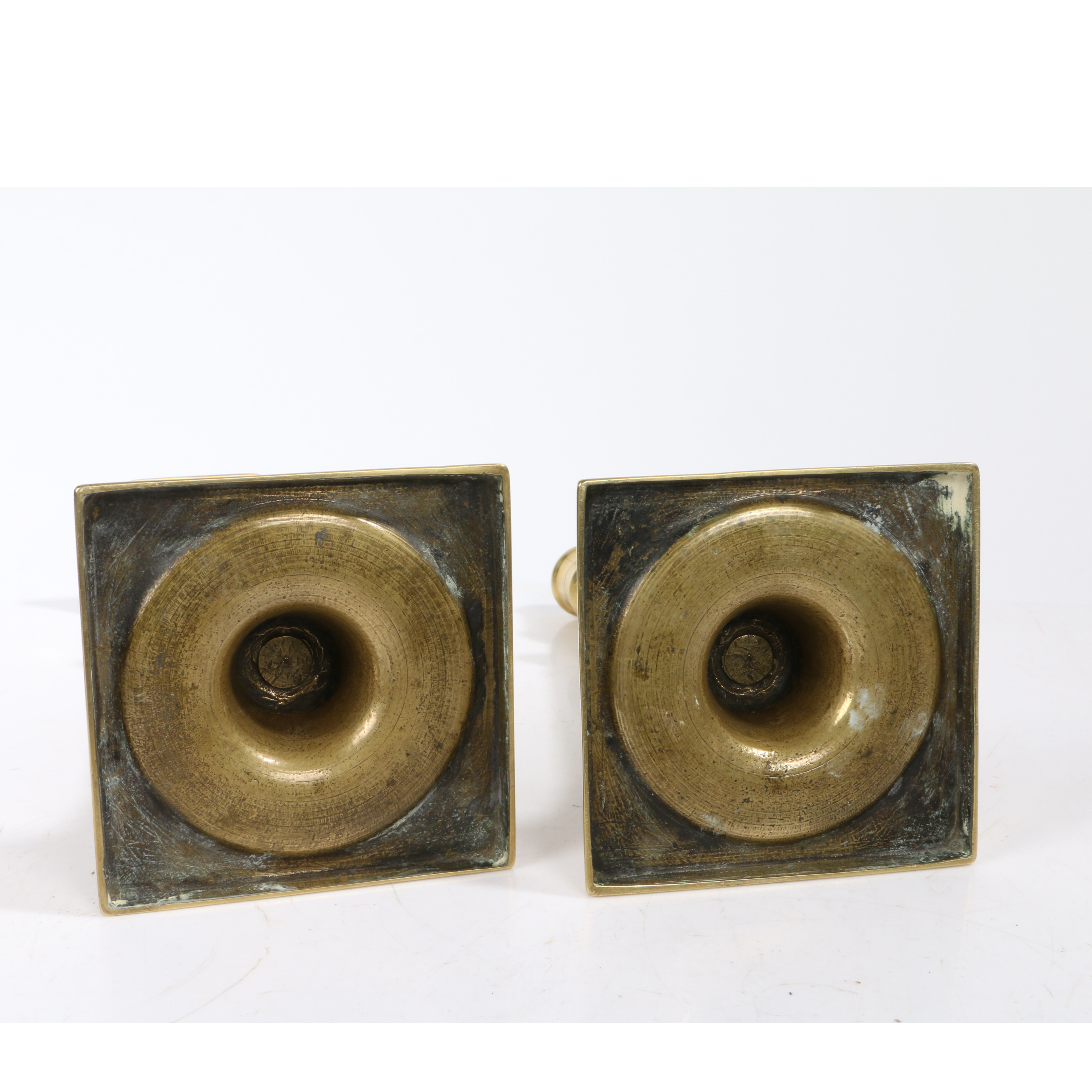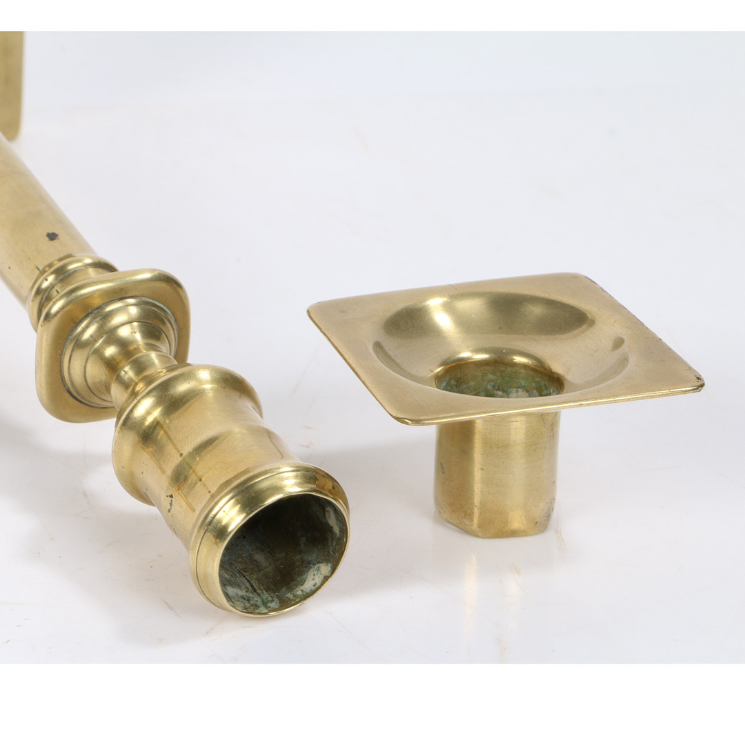 2870069. A PAIR 18TH CENTURY BRASS CANDLESTICK.