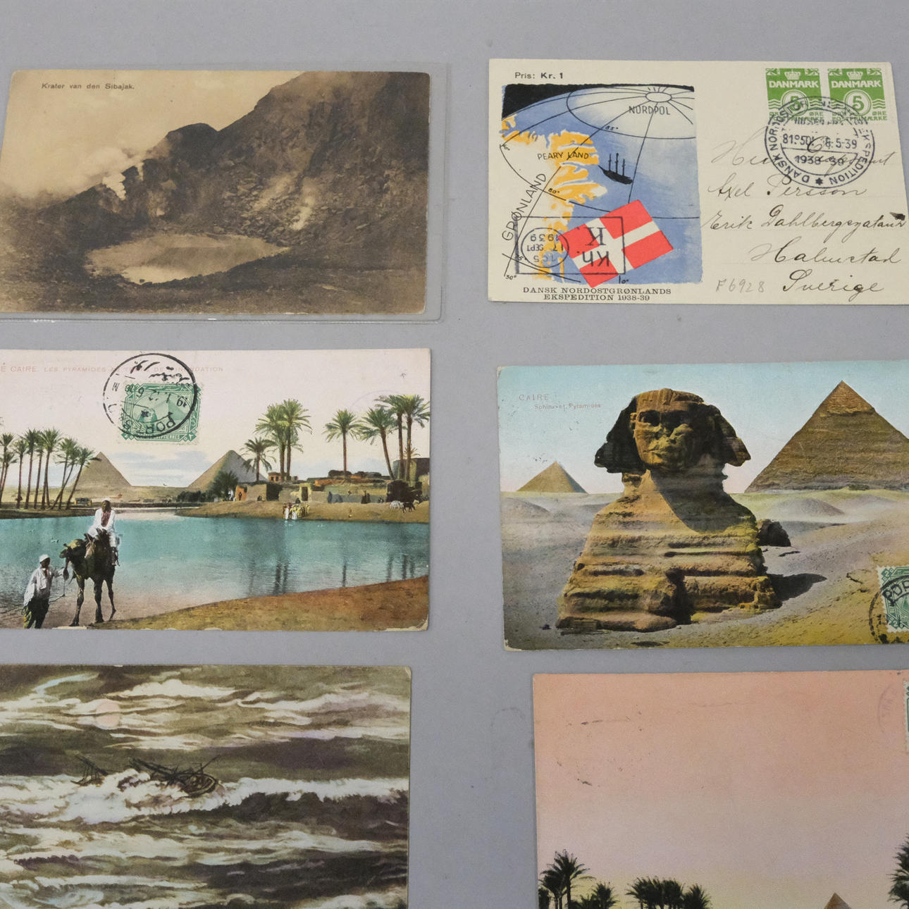 34 postcards, including from the railway station in Stångby, the pyramids in Egypt, some from around 1900.