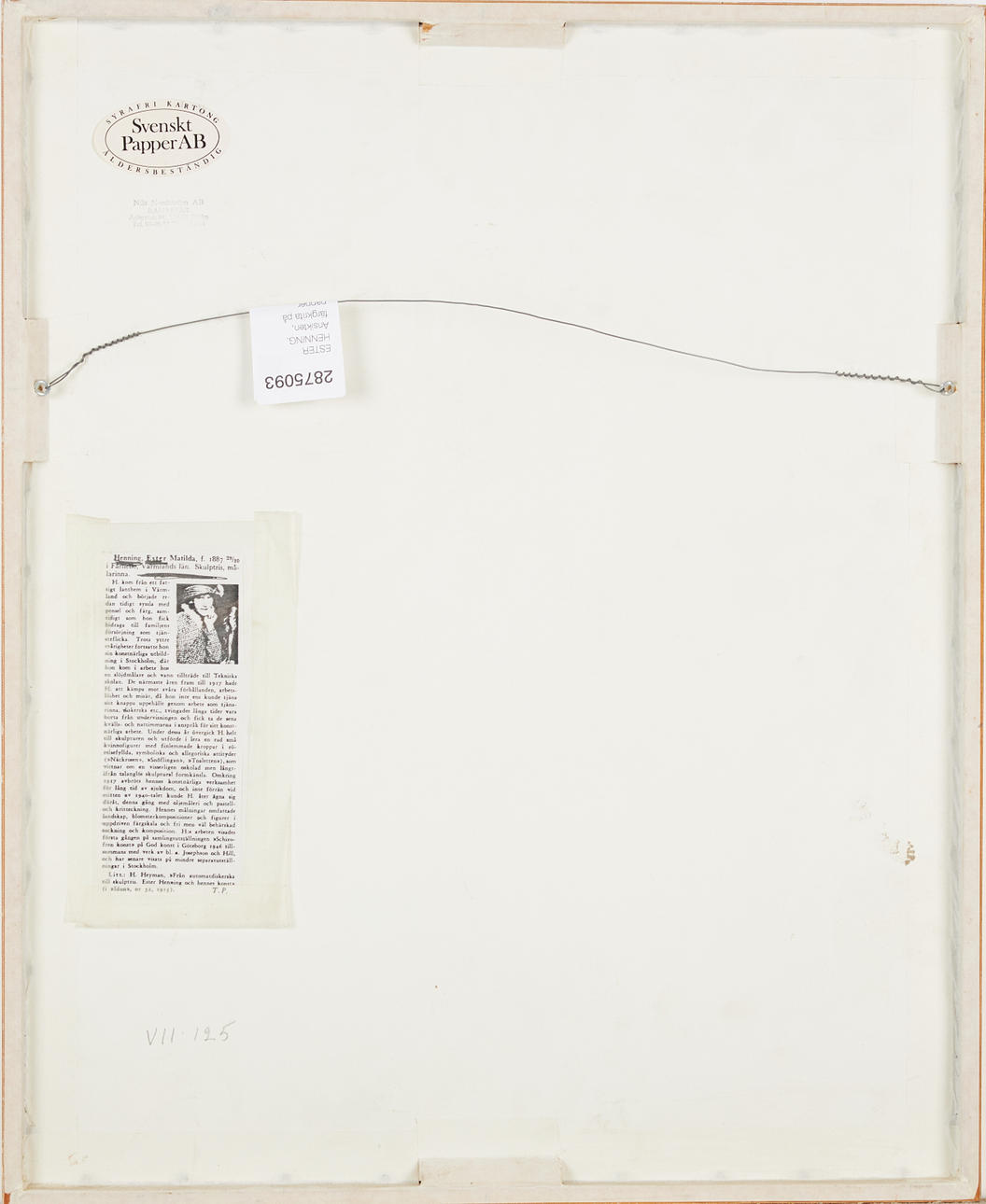 Dimensions inside passepartout approx. 38x29 cm Ester Henning - a gripping life destiny and an indomitable creative force that defied a lifelong existence in a degrading mental hospital environment and created some of the most touching in Swedish 20th century art.