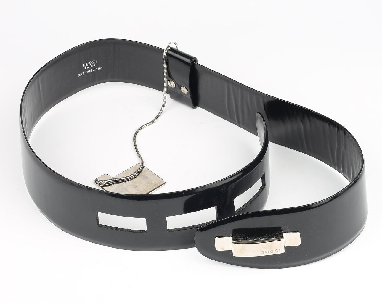 Lacquer, chrome buckle. 85 / 34. Total length 110 cm.