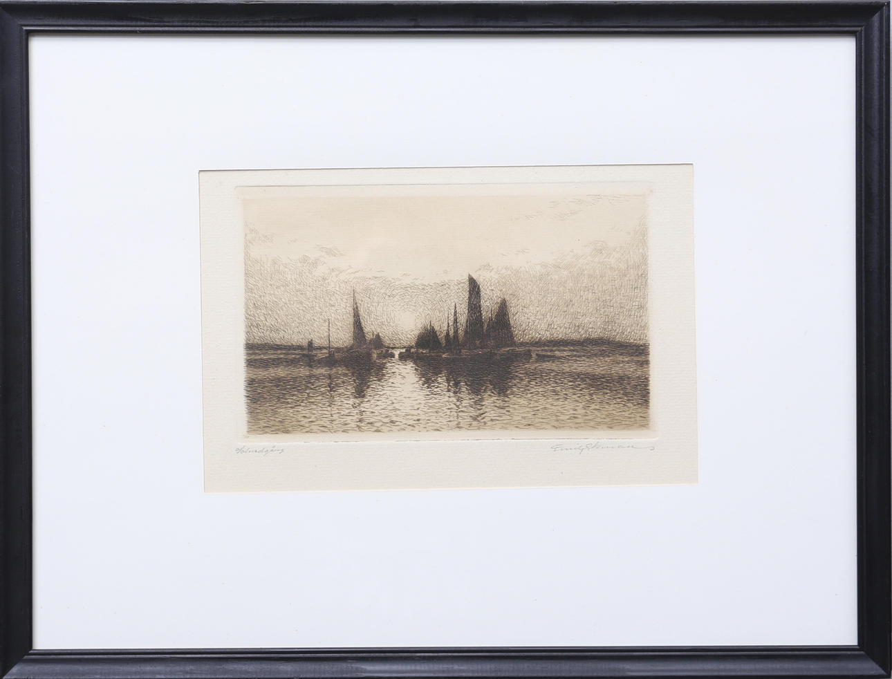 EMIL EKMAN. "Sunset". Etching, signed.