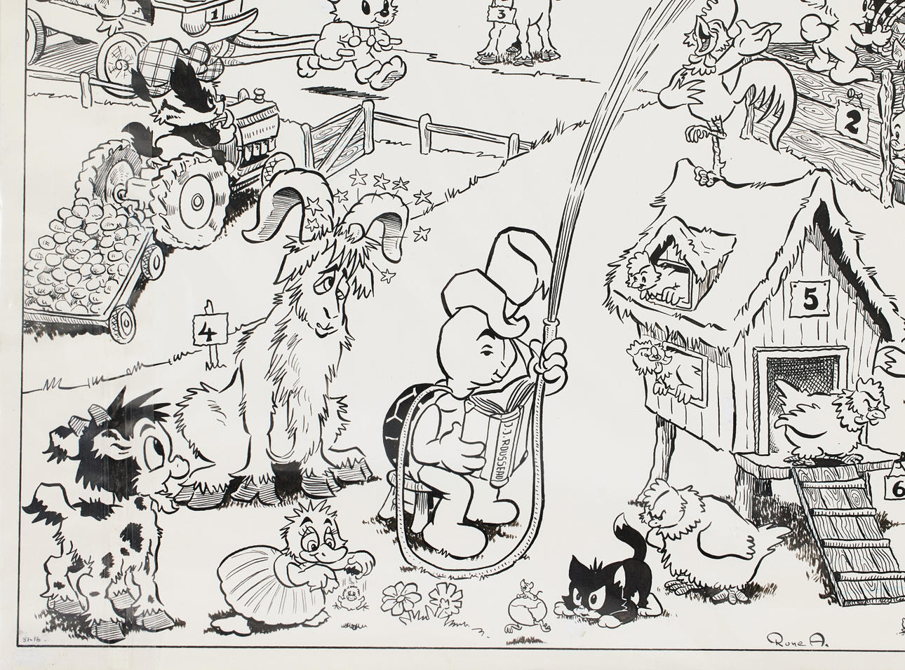 Ink on paper, 30 x 41 cm. Signed Rune A.