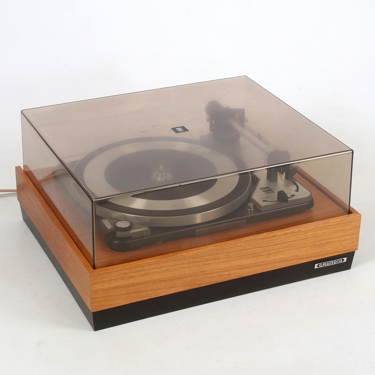 Partly in teak. Cover in plastic. Length 40, width 34, height 20 cm.