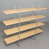 Freestanding shelf with steel frame and four shelves in laminated MDF.