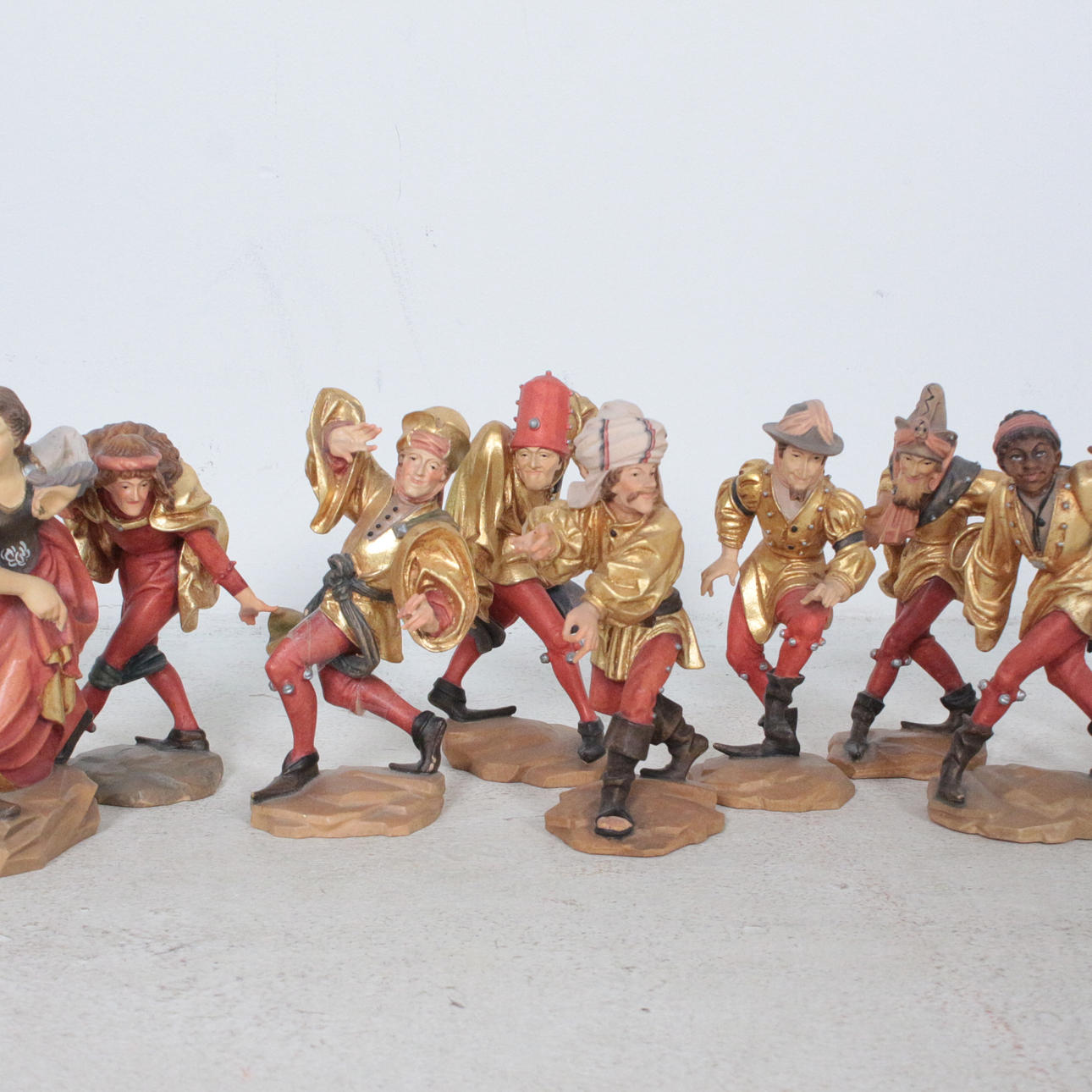 Mixed lot of sculptures 'Moriskentänzer', partly made of wood and made of mass, painted, dimensions each approx.: H. 15 cm, W. 10.5 cm, D. 8 cm.