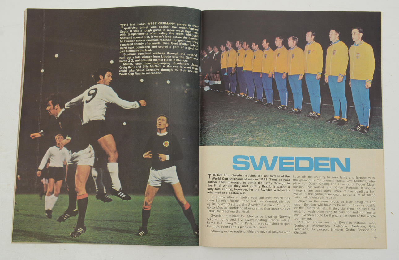Samba soccer - a book about Brazil's national sport by Fredrik Ekelund, 2002 Soccer World Cup through the ages, 2010 Shoot's Bobby Moore World cup special 3'6, Mexico 70 Pelé, produced & arranged by Sergio Mendes, main theme composed & sung by Pelé. Original motion picture soundtrack. LP, Atlantic. SD 18231.