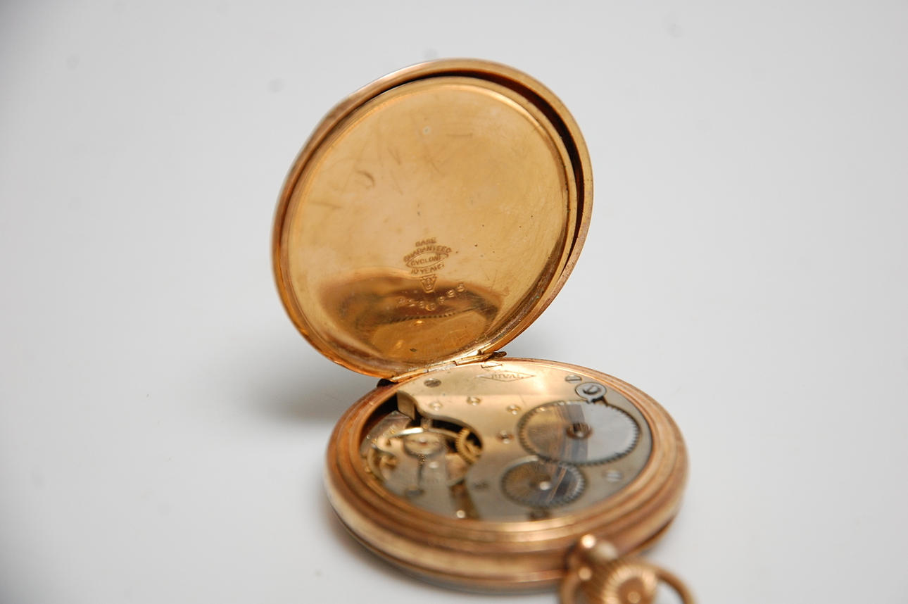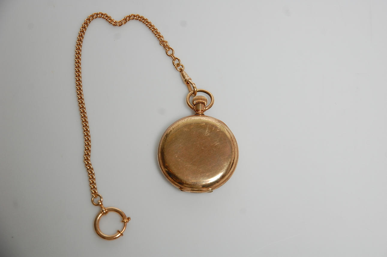 Pocket watch, gilded The chain is not gold.