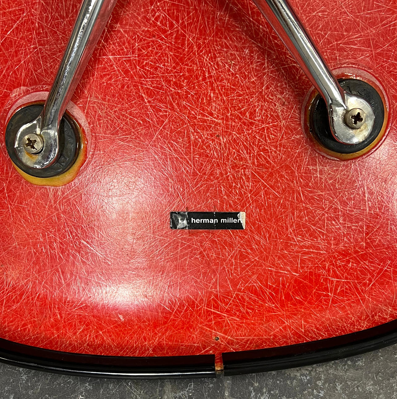 Design Charles & Ray Eames from 1950 Manufacturer Herman Miller/Vitra Model DSL Chrome-plated aluminum frame. LaFonda frame. Shell red fiberglass with black leatherette upholstery.