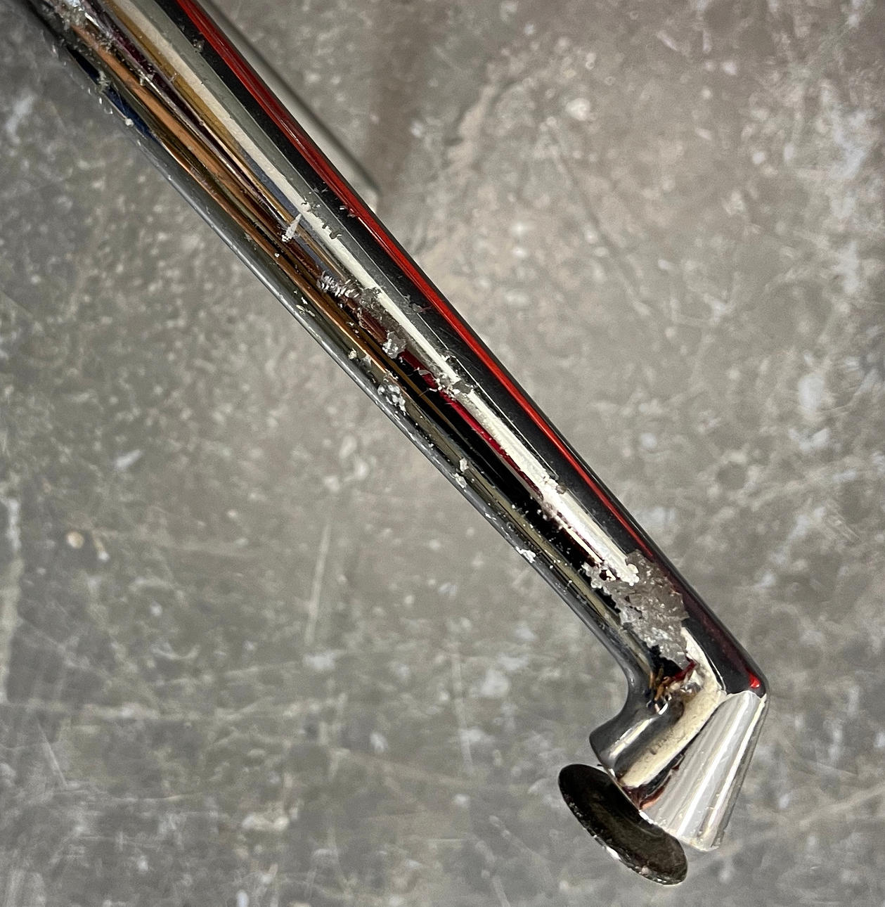 Used. Frame with defects in the chrome plating. Upholstery in good condition.