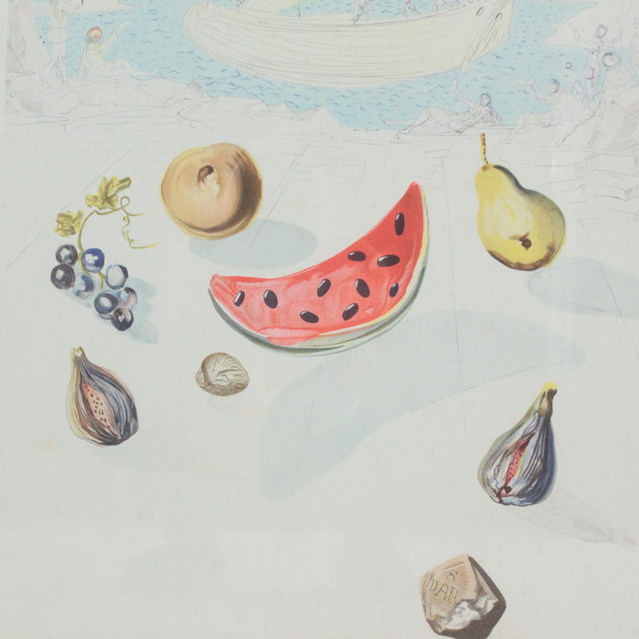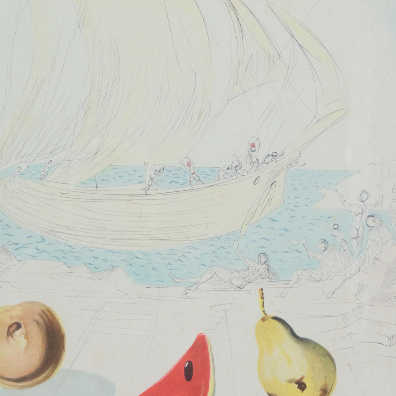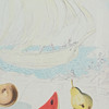 Print based on a watercolor by Salvador Dalí, 'Ship and Fruit', framed, image size: 73 x 50 cm, frame size: 93 x 70 cm.