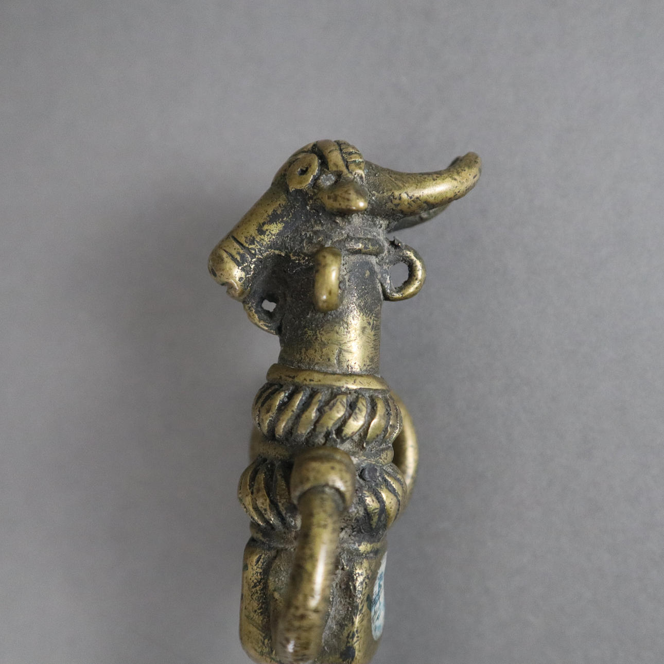 elongated slightly conical shaft, end with stylized ox head, various eyelets, L .ca. 32.5 cm, weight approx. 690 g.