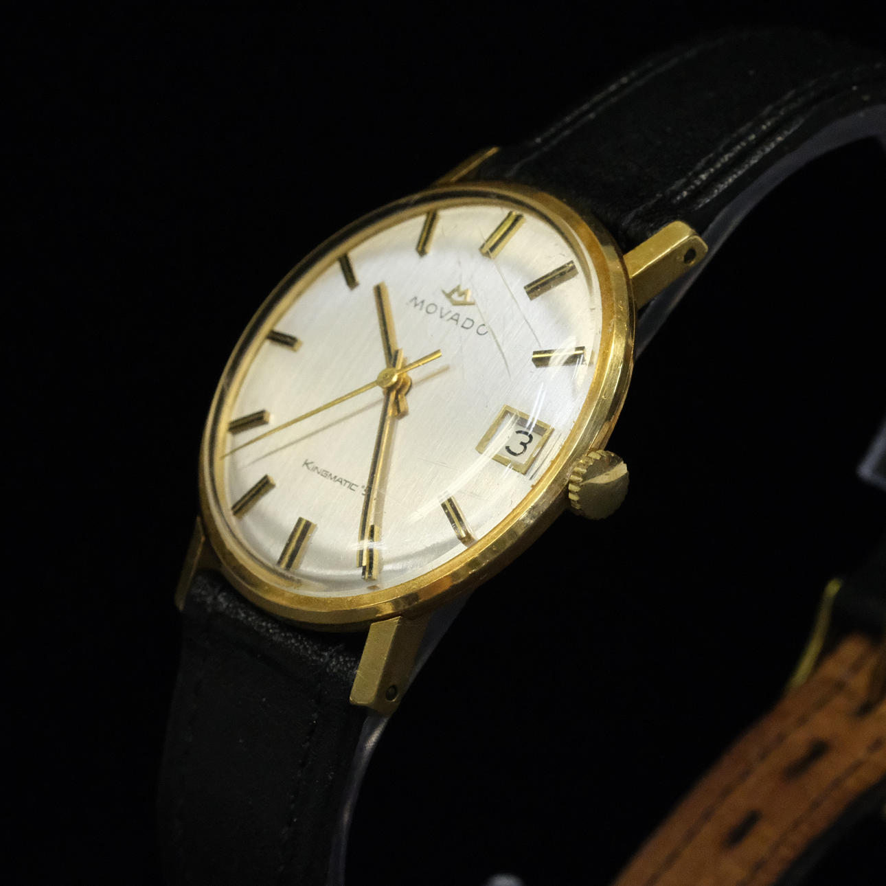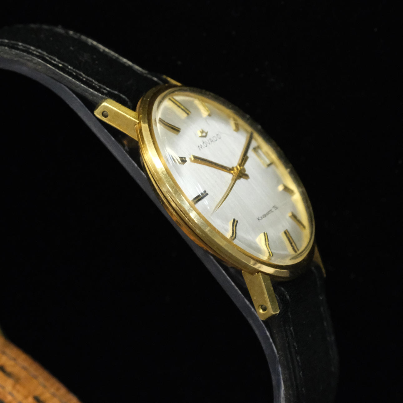 Silver colored dial. Diam. 3.4 cm. Movado case.