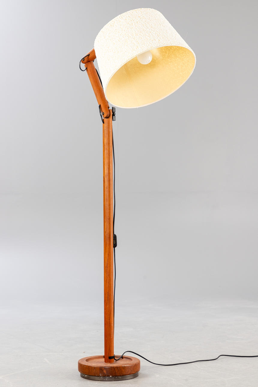 Teak floor lamp, mid-century design. Teak lamp base with articulated and adjustable lamp base. 1 burner, E27 socket.