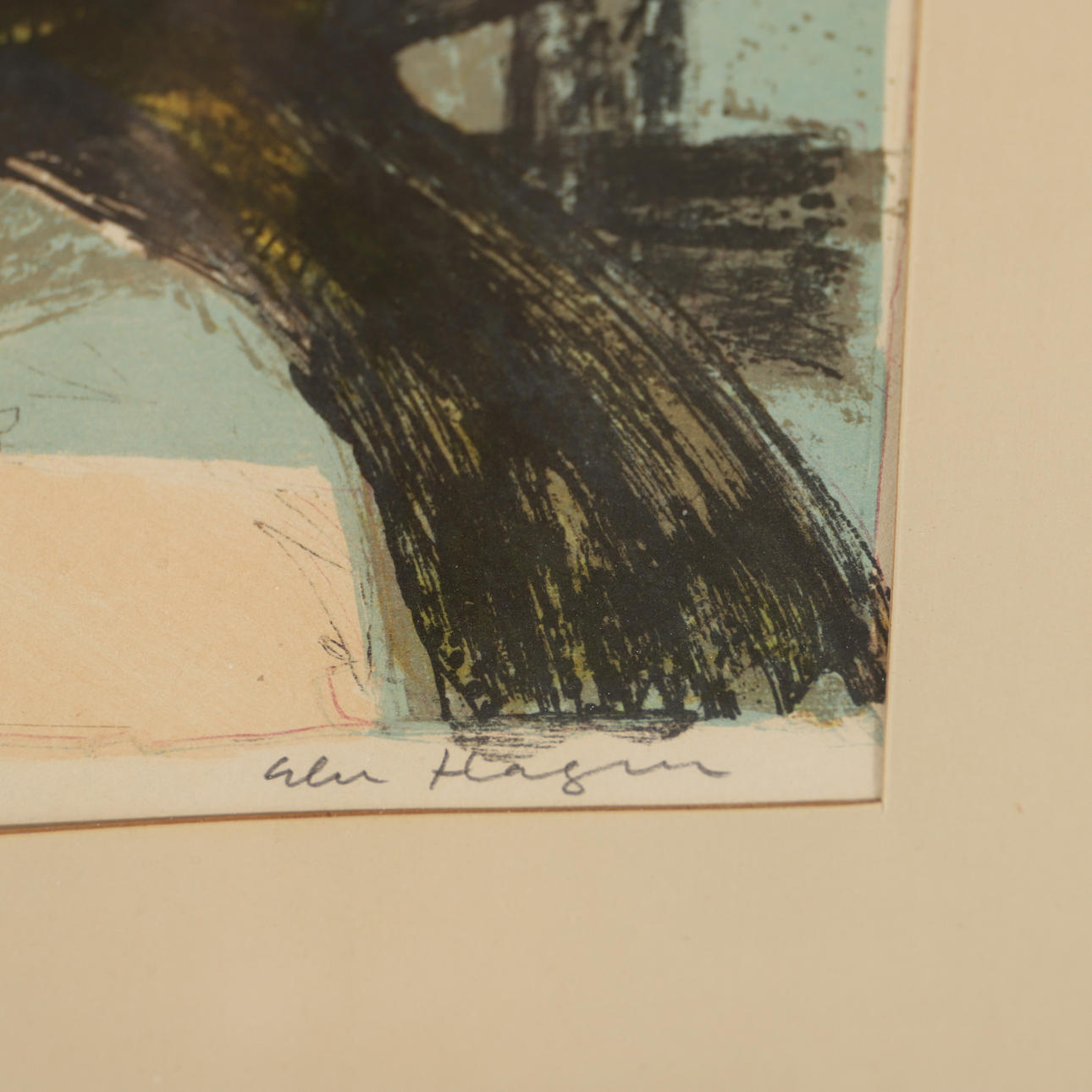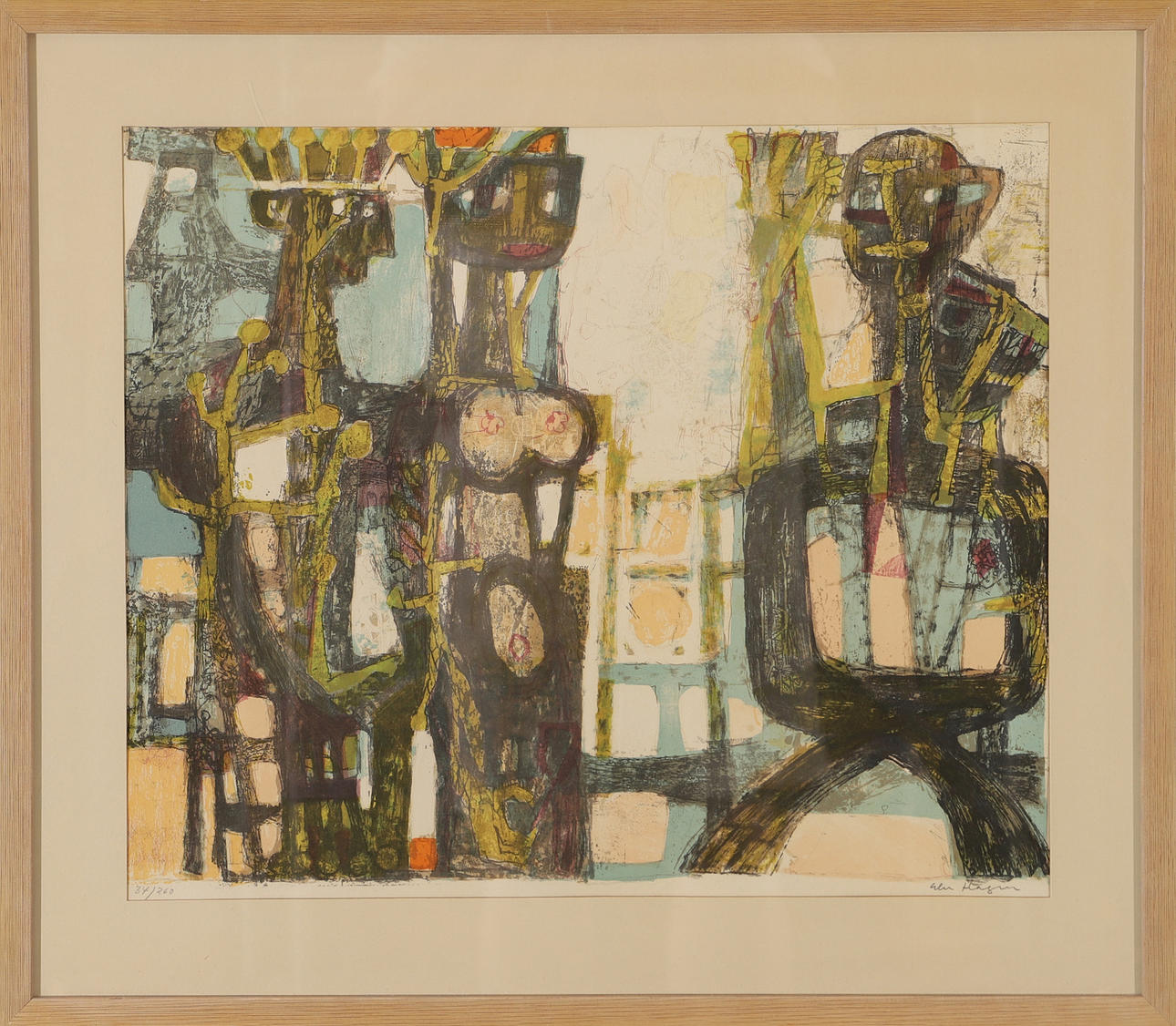 ELSE HAGEN. Composition with figures, color lithograph, signed.