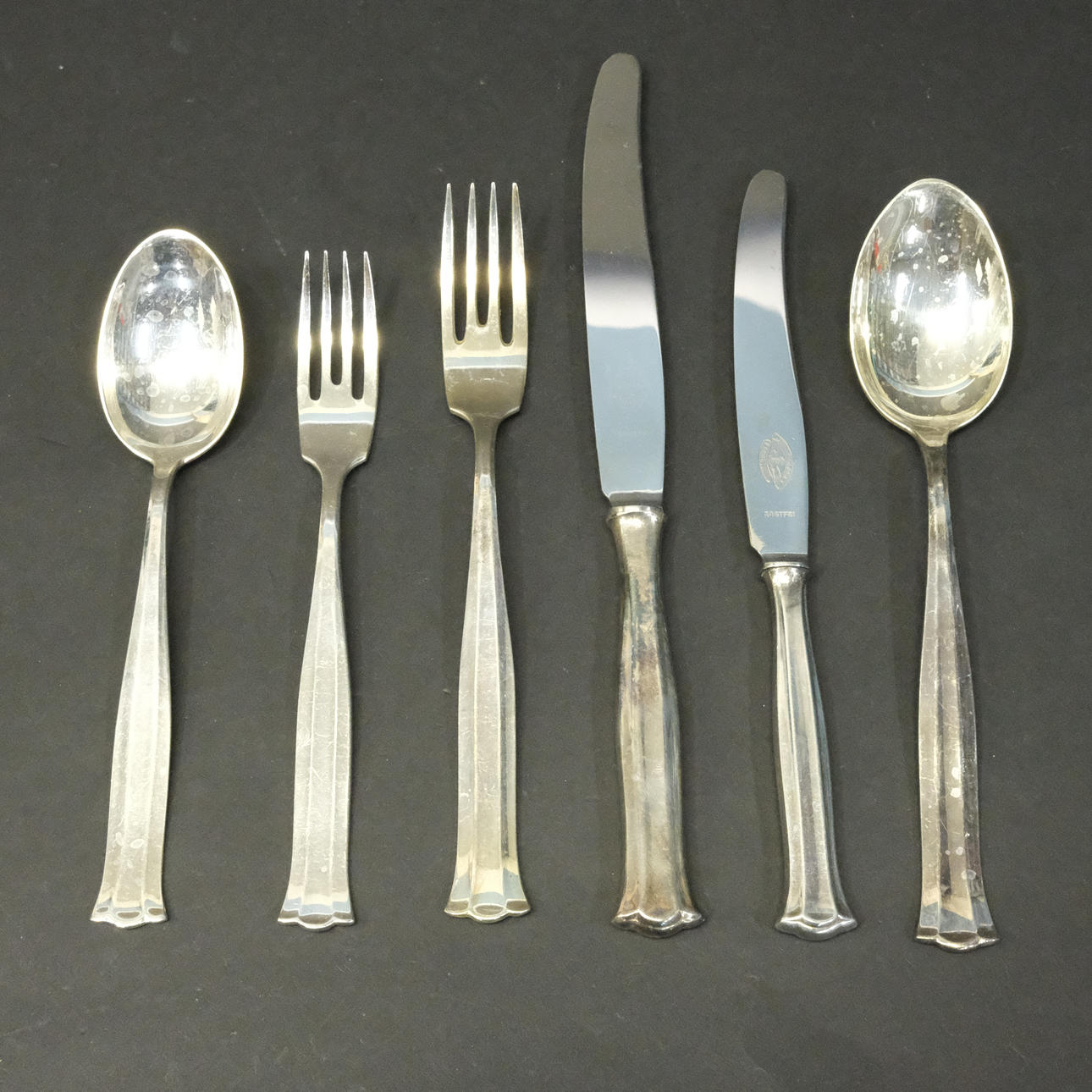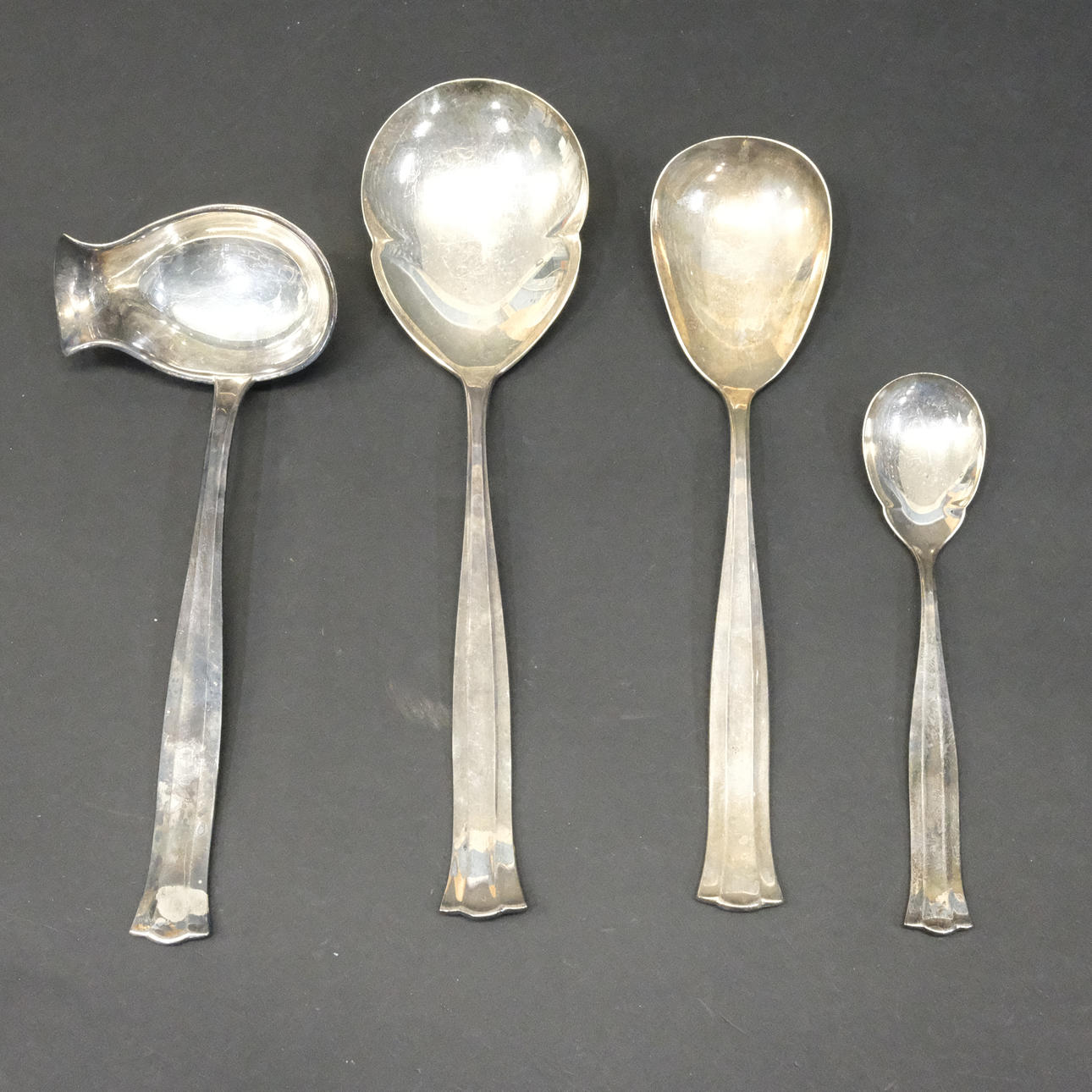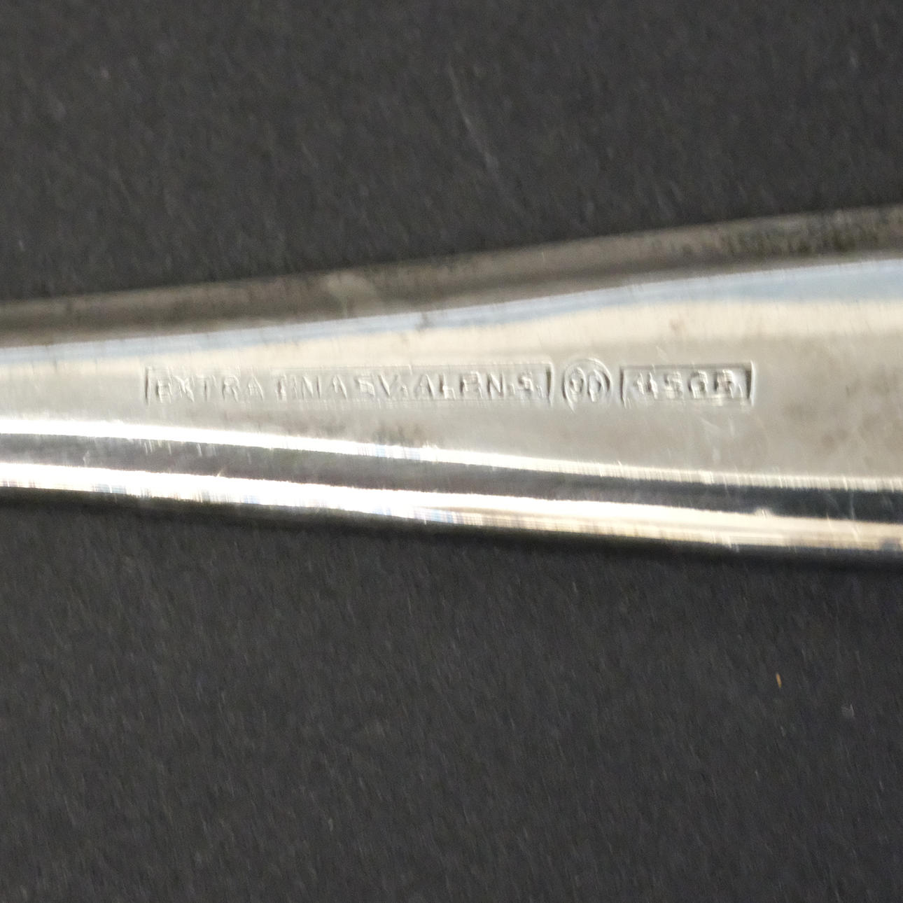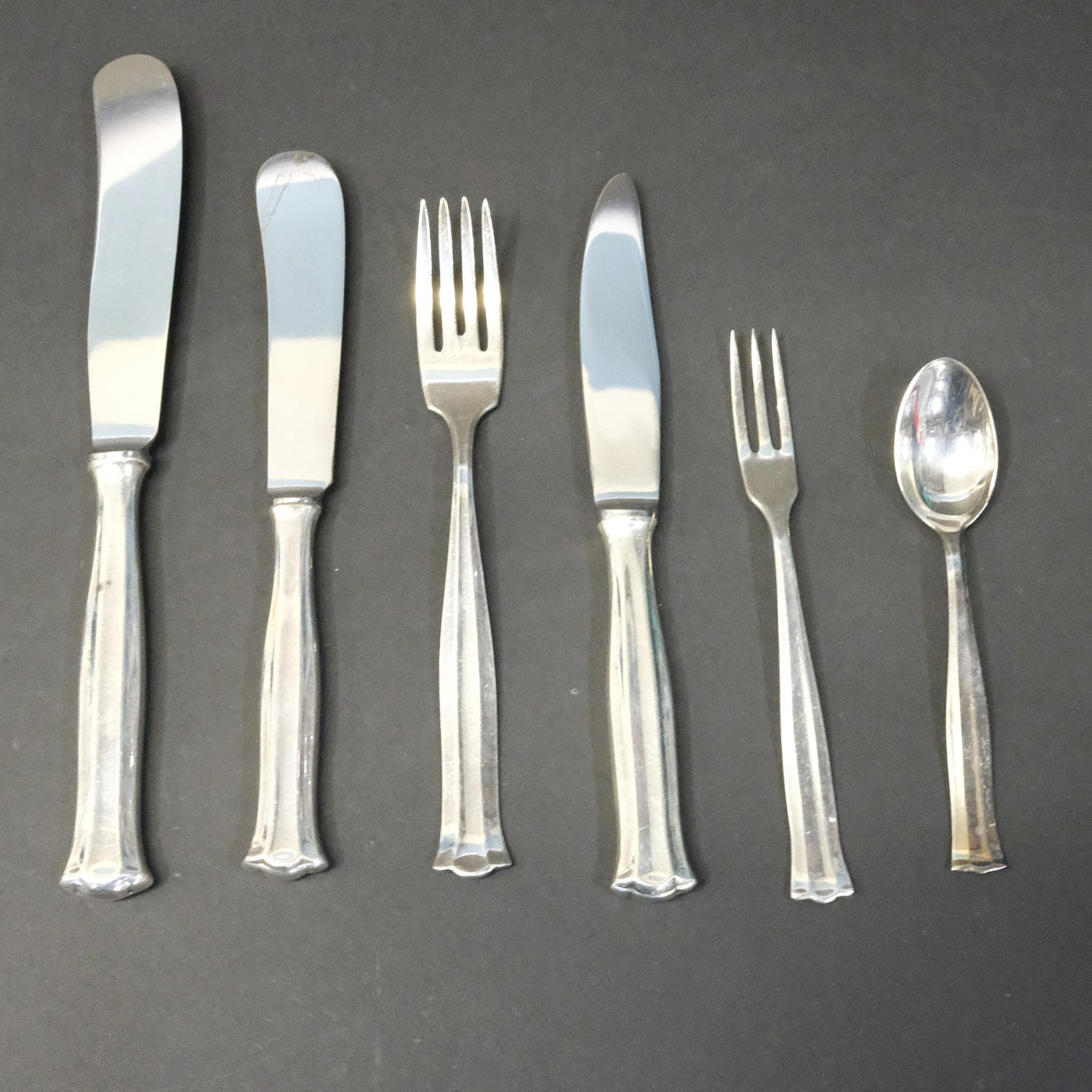 Cutlery, Birgitta, 12 forks, length 20cm, 12 knives, length 25.5cm, 12 spoons, length 20cm, 12 forks, length 18cm, 12 knives, length 21cm, 12 spoons, length 18cm, six forks, length 15cm, five knives , length 16cm, six butter knives, length 16.5cm, four butter knives, length 19.5cm, four forks, length 13cm, two marmalade spoons, length 14cm, 14 teaspoons, length 11cm, ladle, length 18cm and two serving spoons, length 20 and 21 .5 cm.