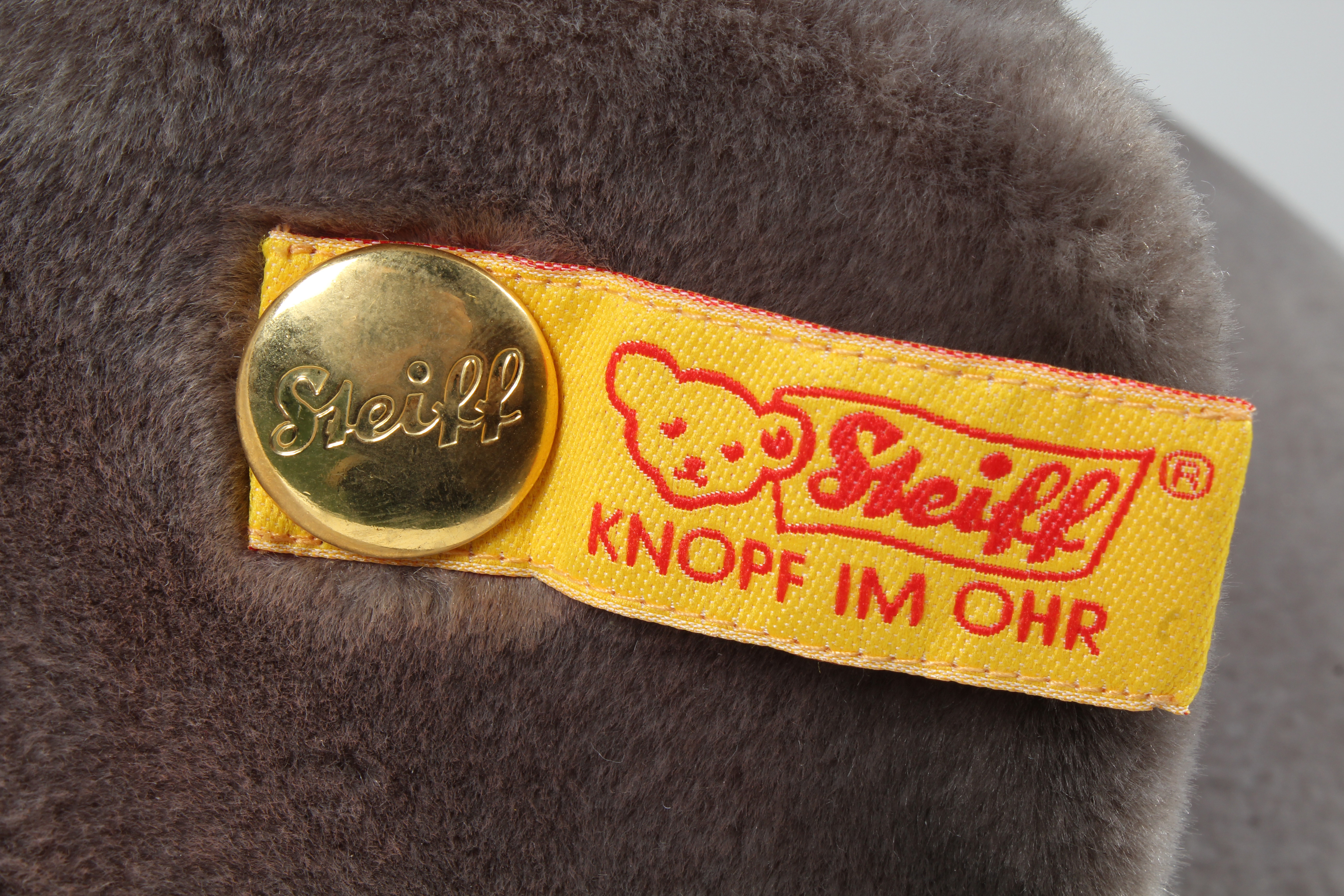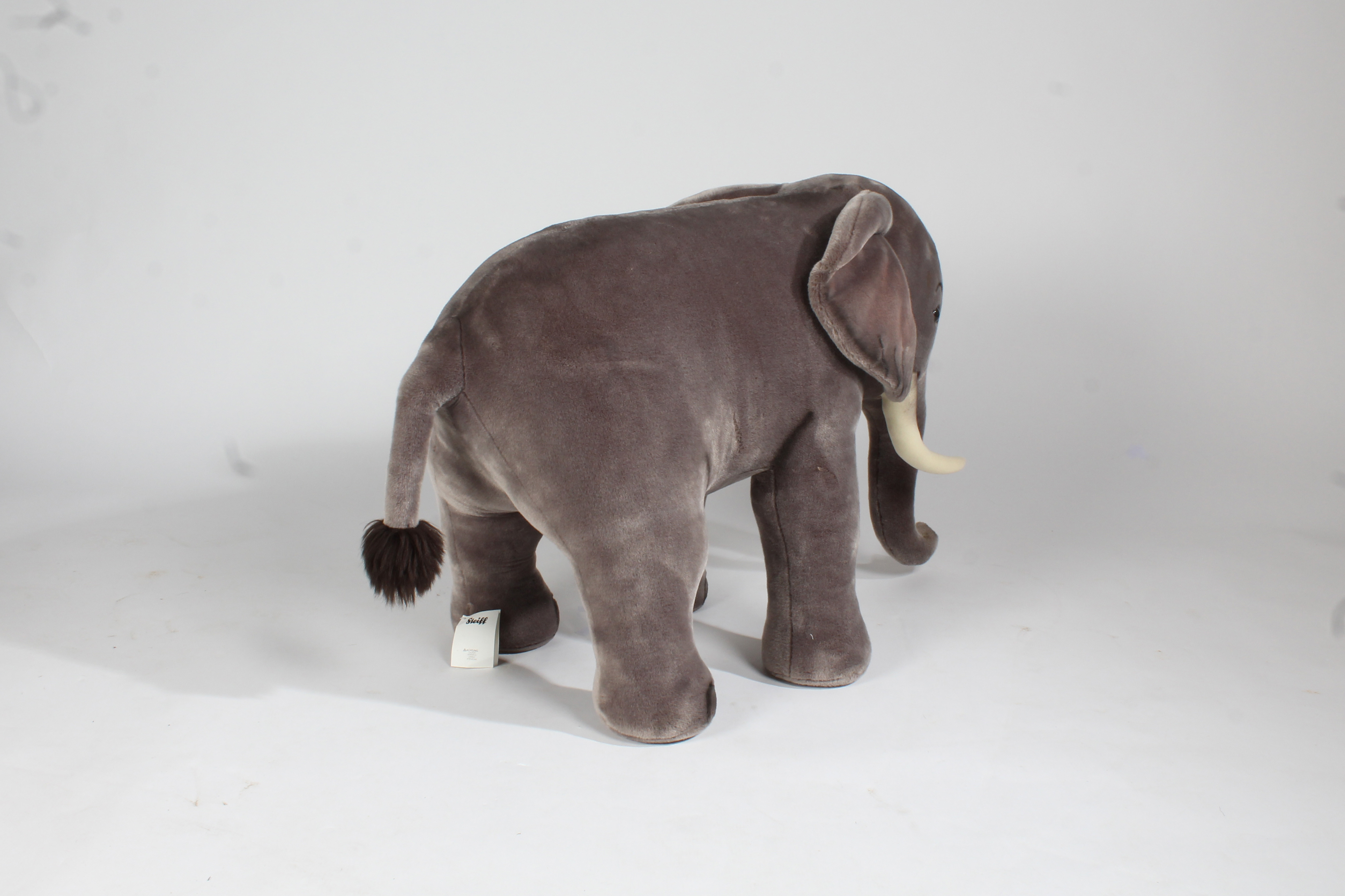 2896963. A STEIFF ELEPHANT WITH BUTTON AND LABEL.