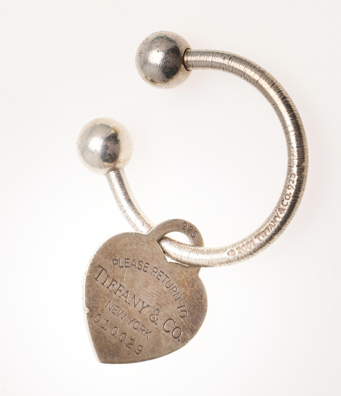The keyring with heart tag Please Return to Tiffany & Co. New York, stamped 925. with original pouch.