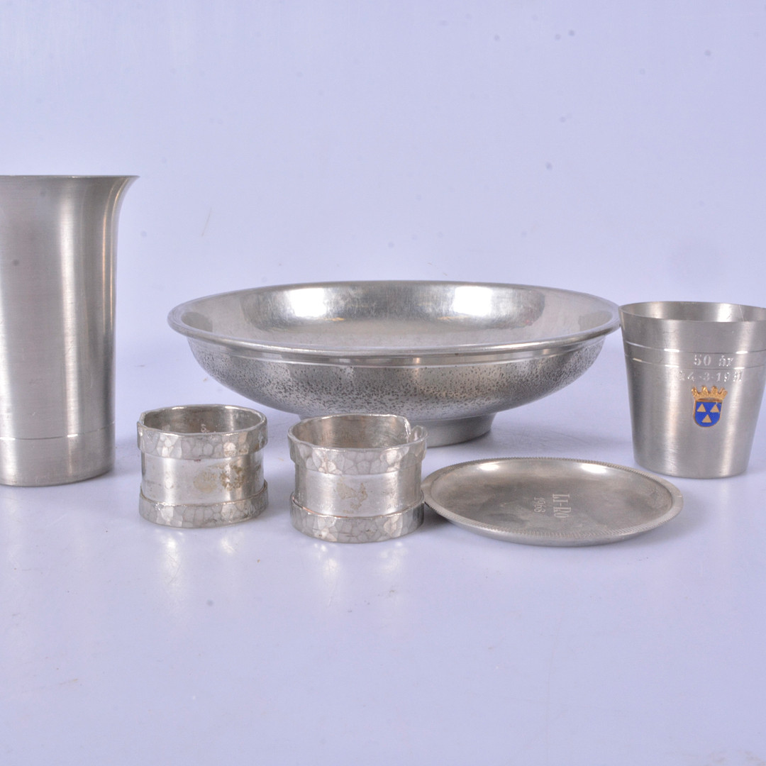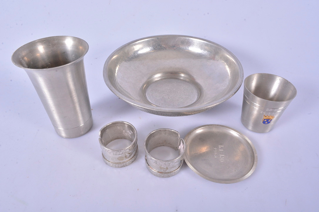 2903067. PEWTER OBJECTS, 6 parts, 1900s.