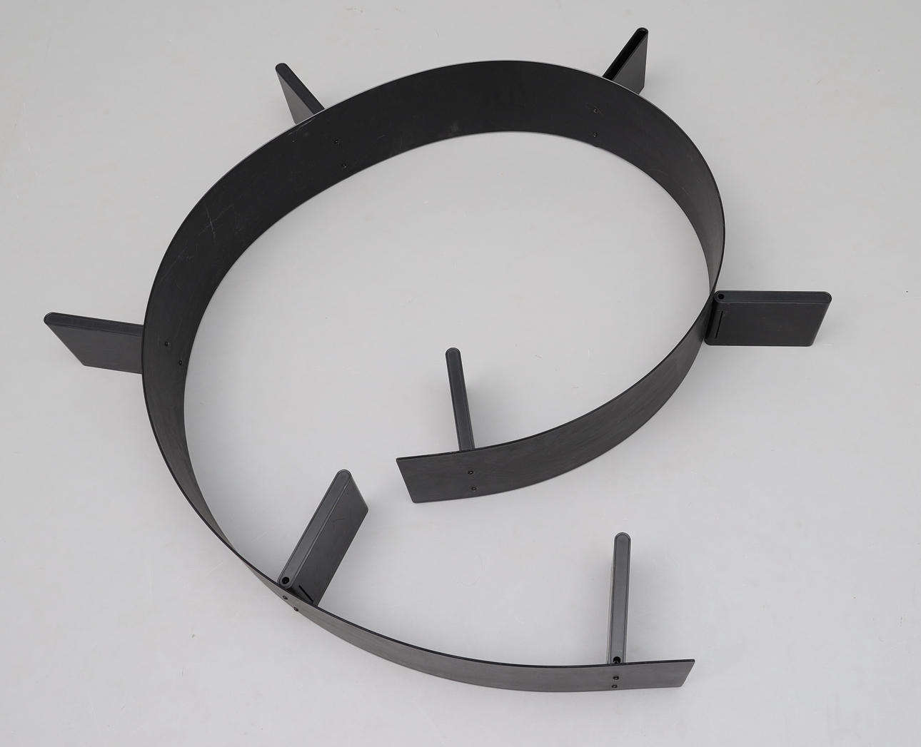 Bendable bookcase with removable shelves.