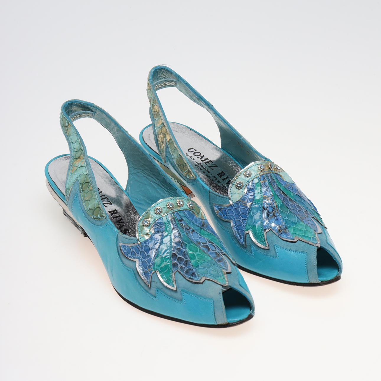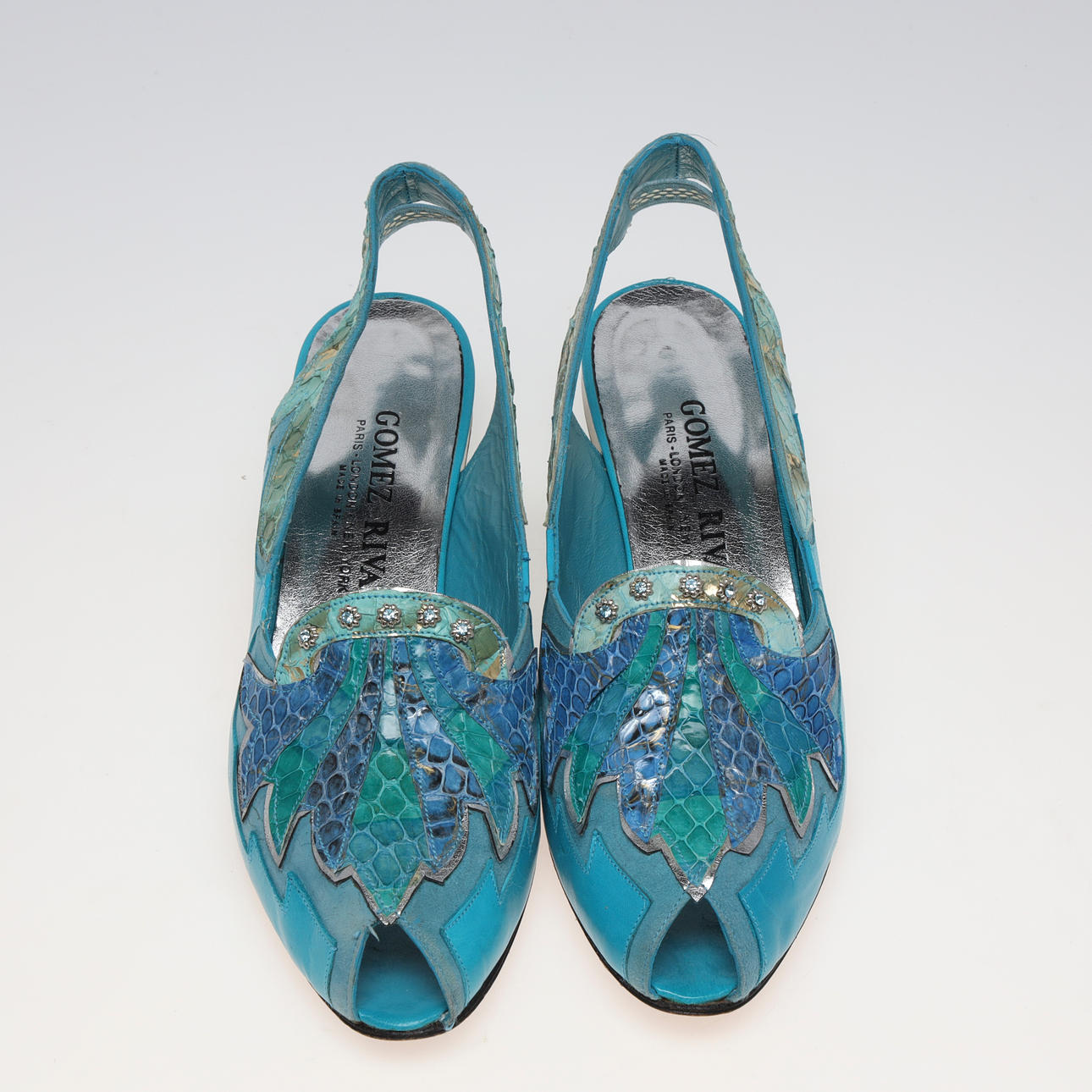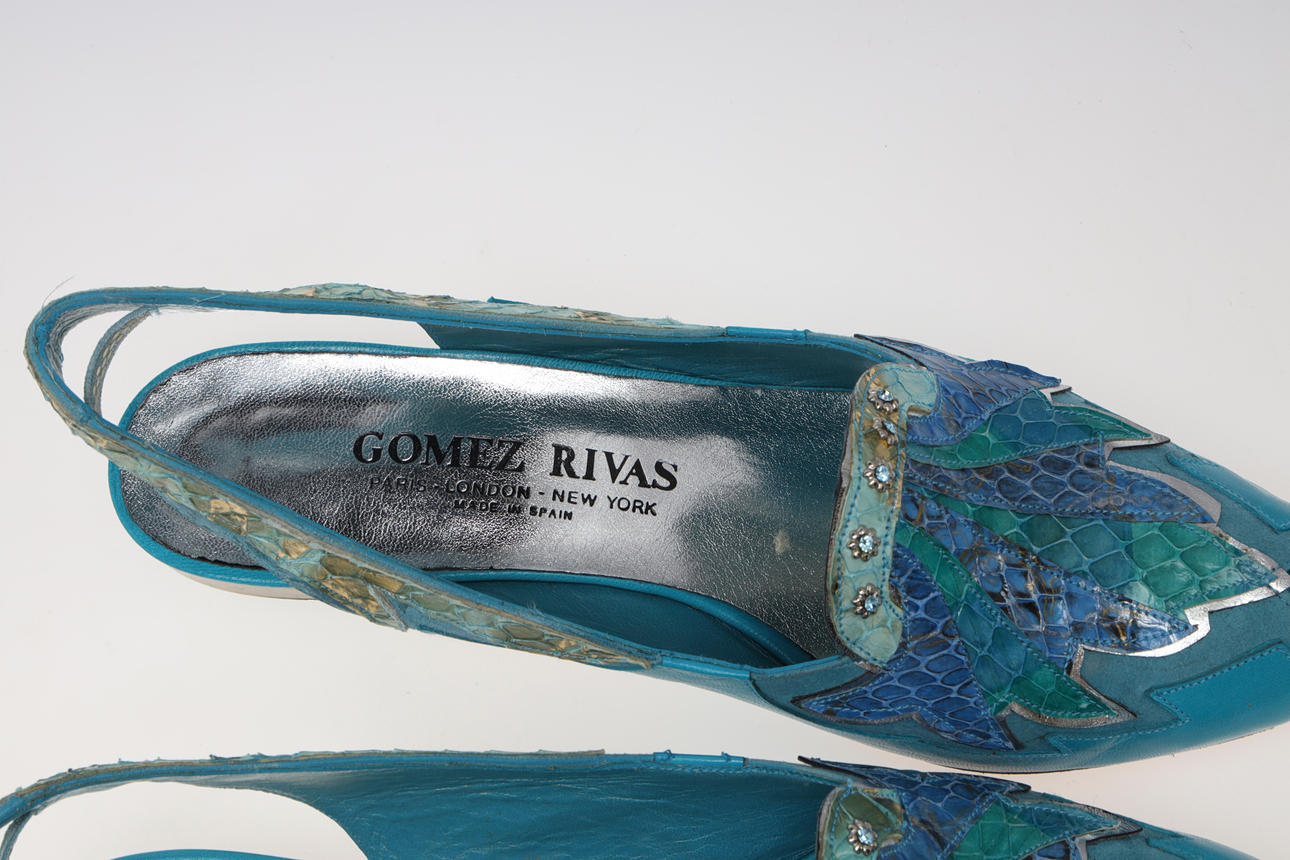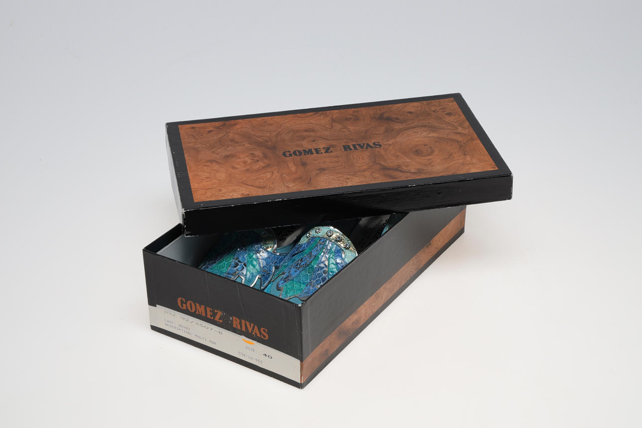 in dyed and embossed leather, marked Gomez Rivas. inner dimensions approx. 25.5 cm. Shoe box included.
